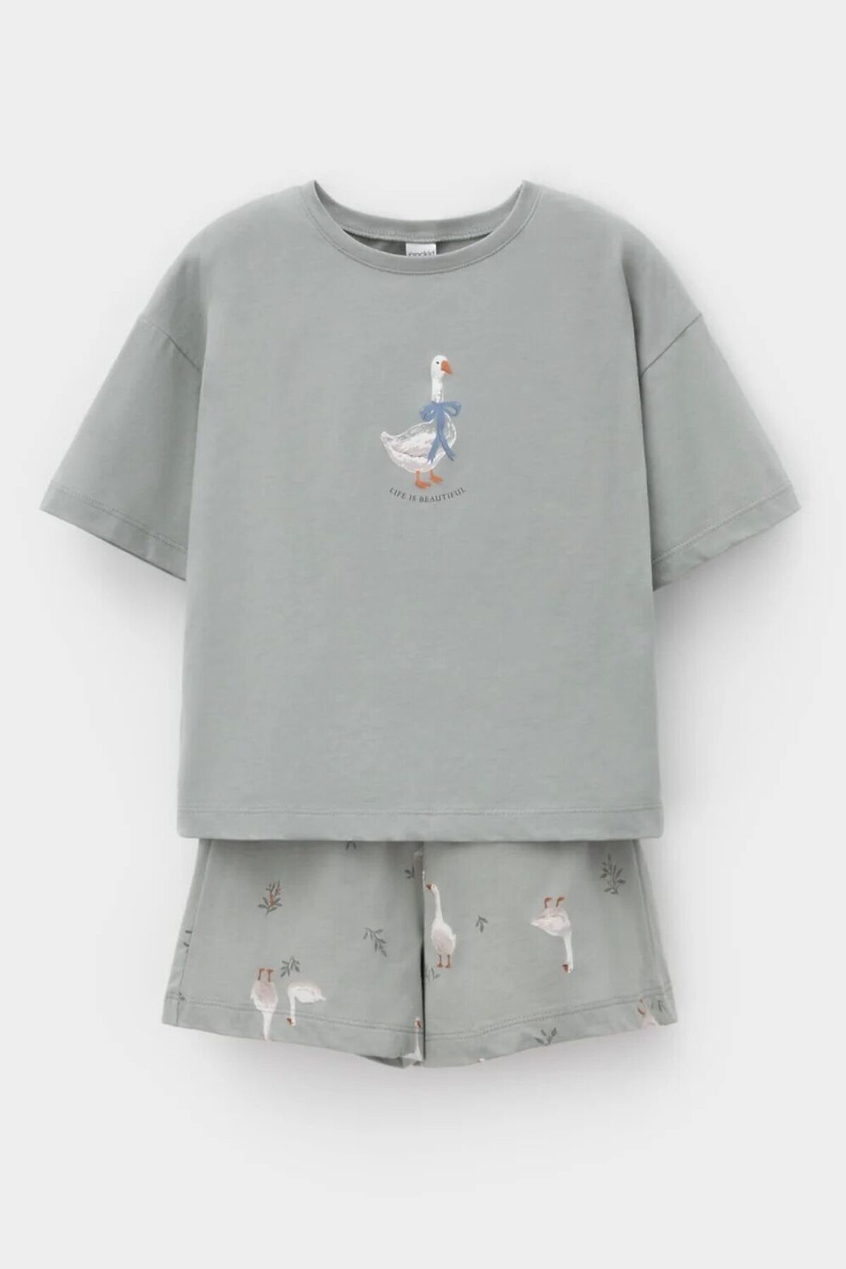 Трикотажная пижама из натурального хлопка для комфортного сна и отдыха. Свободная футболка с короткими спущенными рукавами и шорты с мягкой эластичной резинкой в поясе. Оригинальный рисунок выполнен из стойких текстильных гипоаллергенных красителей. Изделие сохраняет цвет и форму после многократных стирок. Все трикотажные полотна производятся в соответствии с нормами швейцарского сертификата ЭкоТекс.