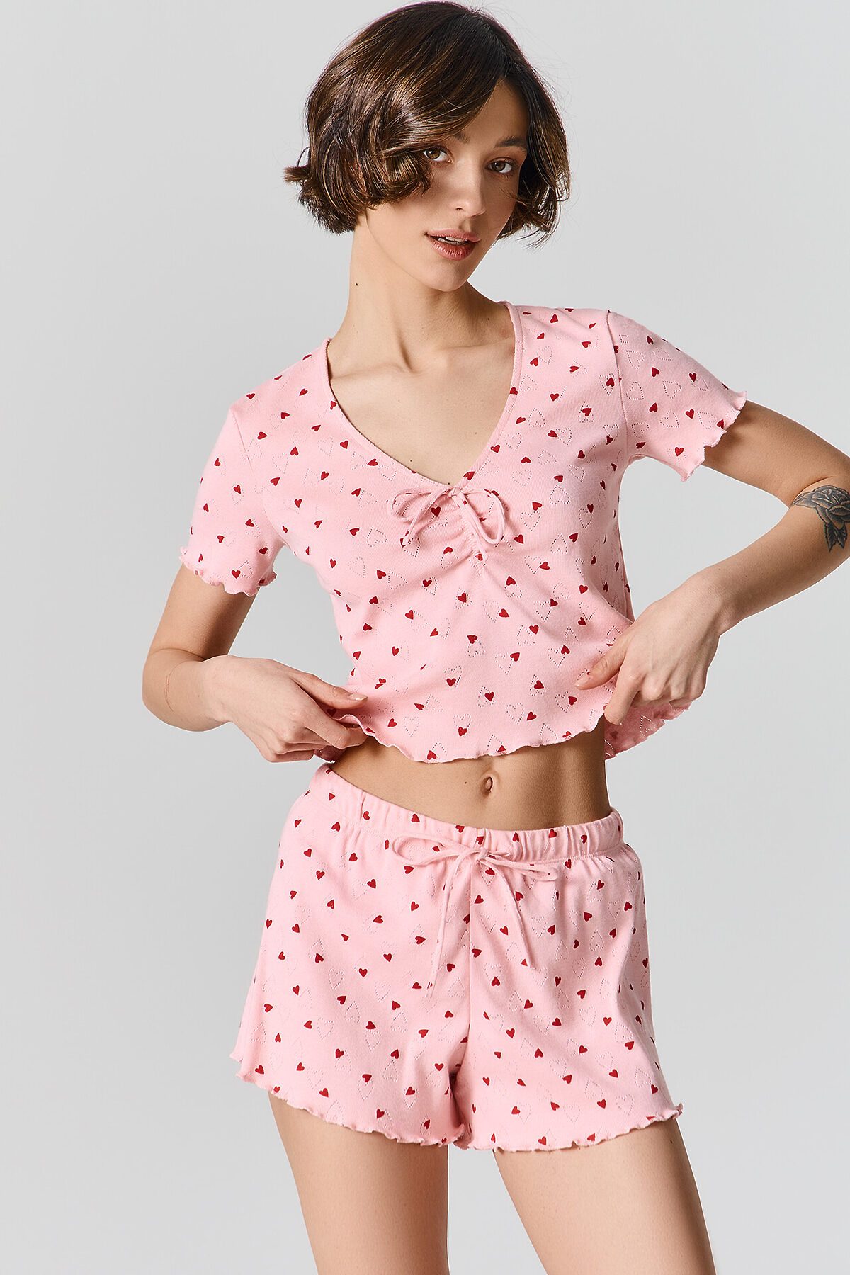 Комплект женский (блуза, шорты) MARK FORMELLE, сердца на розовом