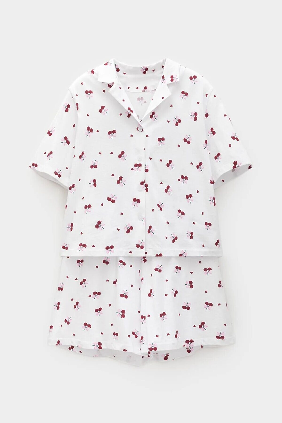 Трикотажная пижама из натурального хлопка для комфортного сна и отдыха. Рубашка на пуговицах с короткими рукавами и свободные шорты с мягкой эластичной резинкой в поясе. Гладкий материал приятен к телу, не теряет форму и позволяет коже дышать. Набивной рисунок выполнен из стойких текстильных гипоаллергенных красителей. Все трикотажные полотна производятся в соответствии с нормами швейцарского сертификата ЭкоТекс.