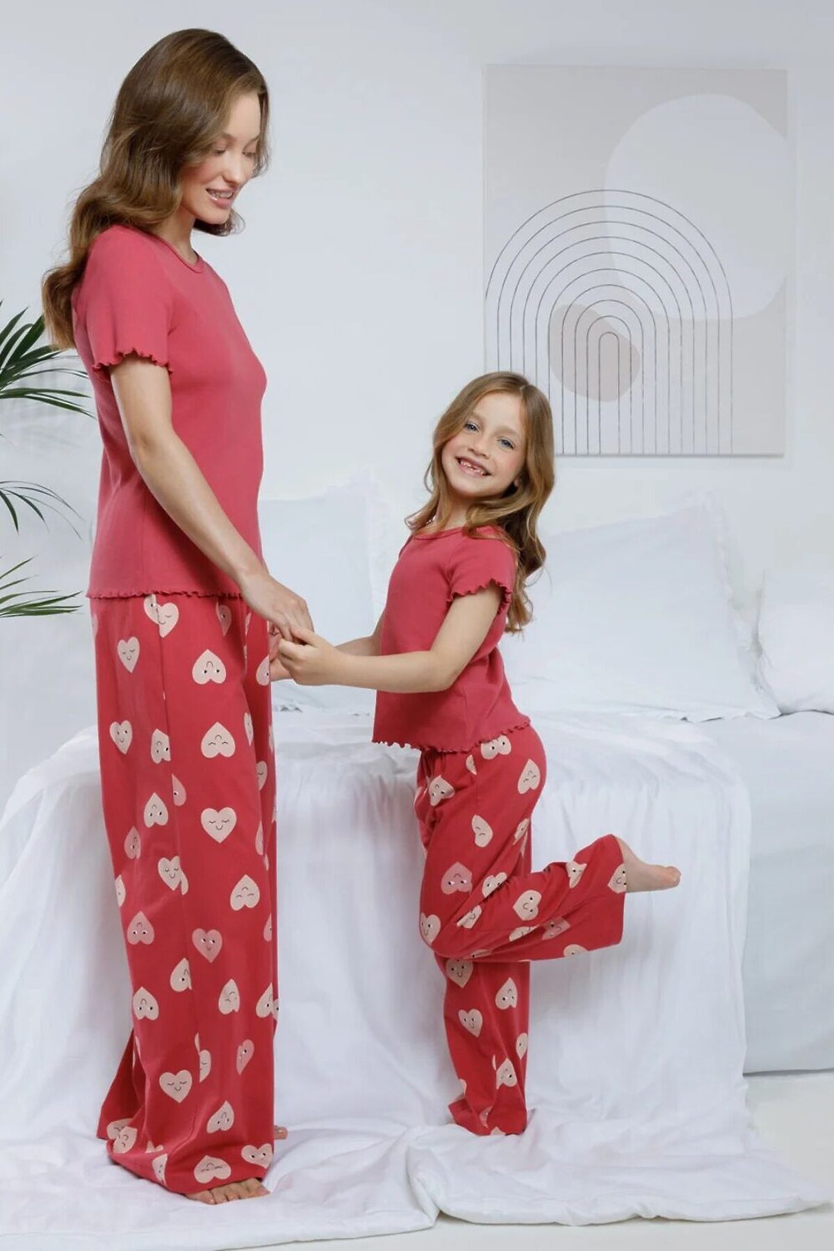 Комплект из натурального хлопка для комфортного сна и отдыха. Футболка с короткими втачными рукавами изготовлена из мягкого материала в рубчик. Прямые брюки выполнены из гладкого трикотажа супрем и благодаря эластичной резинке в поясе удобно садятся по фигуре. Лёгкий материал приятен к телу, не теряет форму и позволяет коже дышать. Все трикотажные полотна производятся в соответствии с нормами швейцарского сертификата ЭкоТекс.