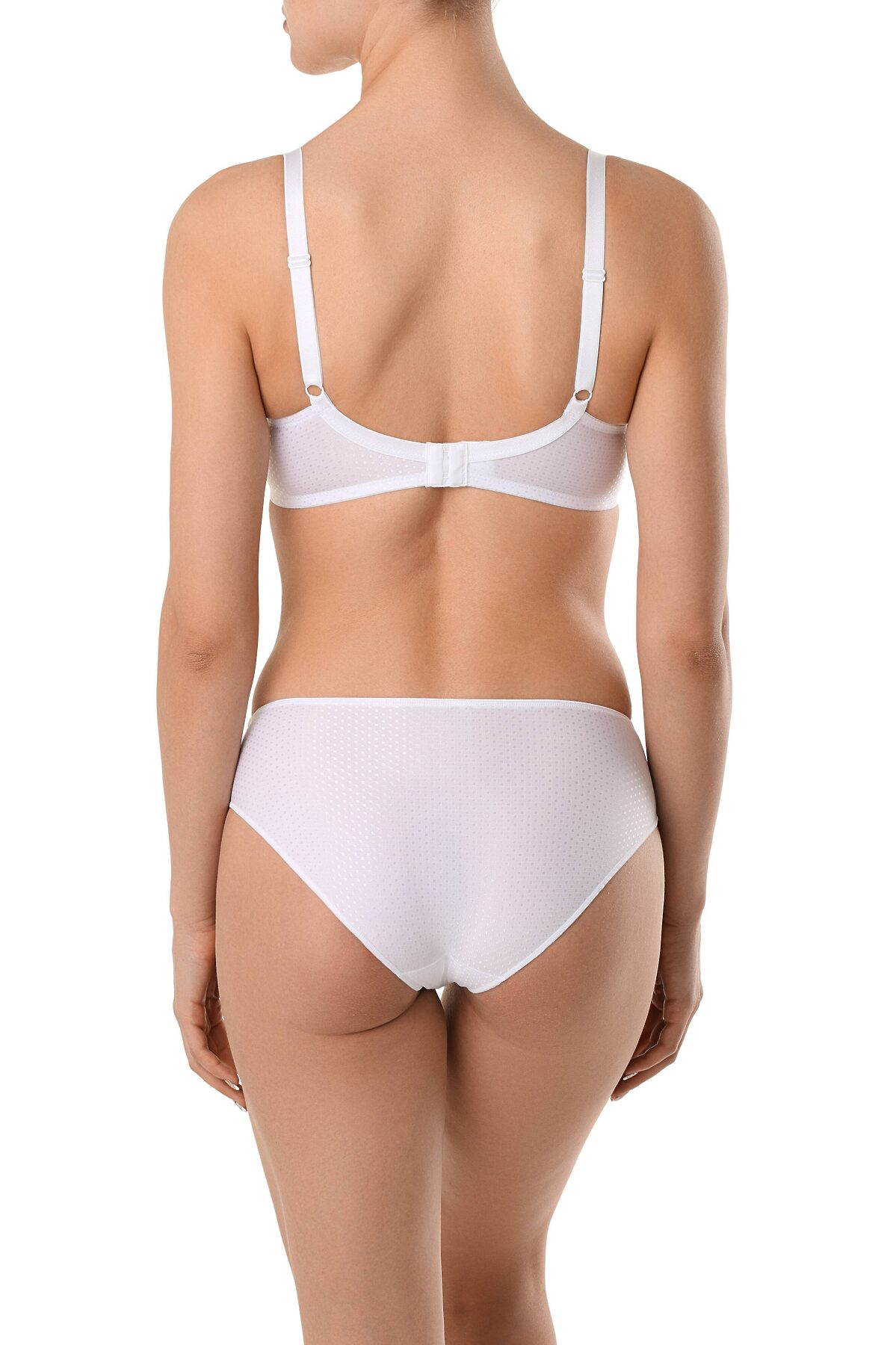 Бюстгальтер серии VOYAGE отличается чистотой линий и исключительным комфортом. Выполненный из полотна с деликатным жаккардовым рисунком «в горошек» и украшенный аппликациями макраме, бюстгальтер поможет создать одновременно простой и утонченный образ. В бюстгальтере используется «дышащий» материал spacer. Преимущества модели:- формованная чашка spacer, на каркасах;- чашка покрыта жаккардовым полотном;- вышитые аппликации макраме. - абсолютный комфорт на протяжении всего дня.