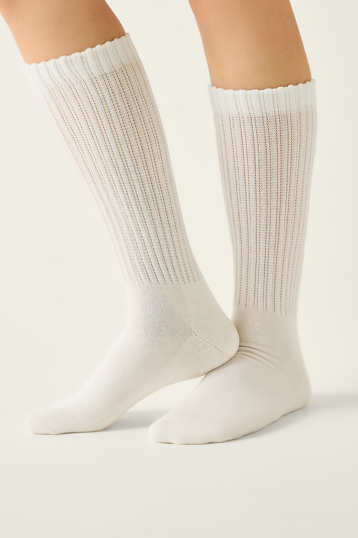 Комфортные теплые женские носки из хлопка с махровой стопой, с высоким паголенком-резинкой.