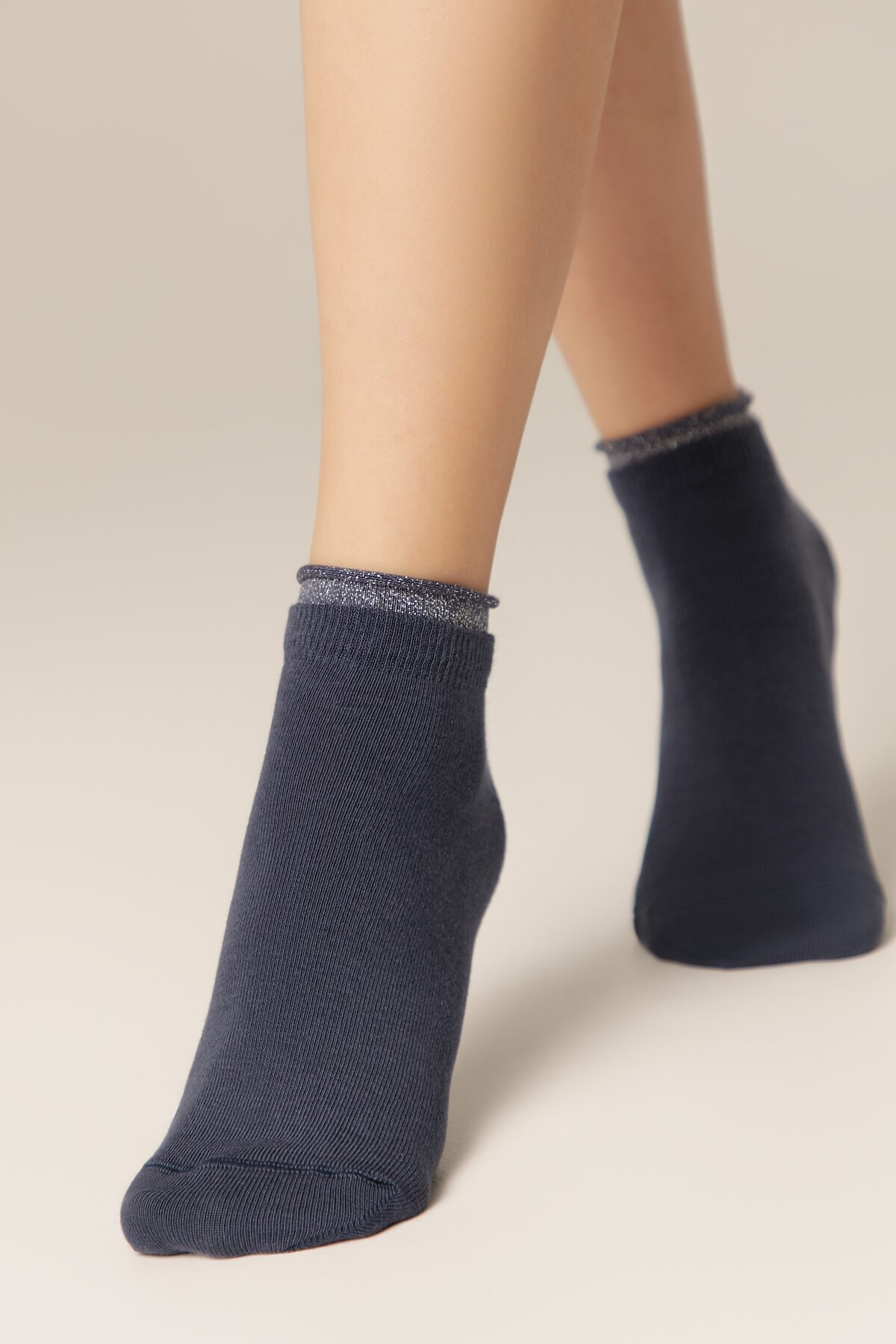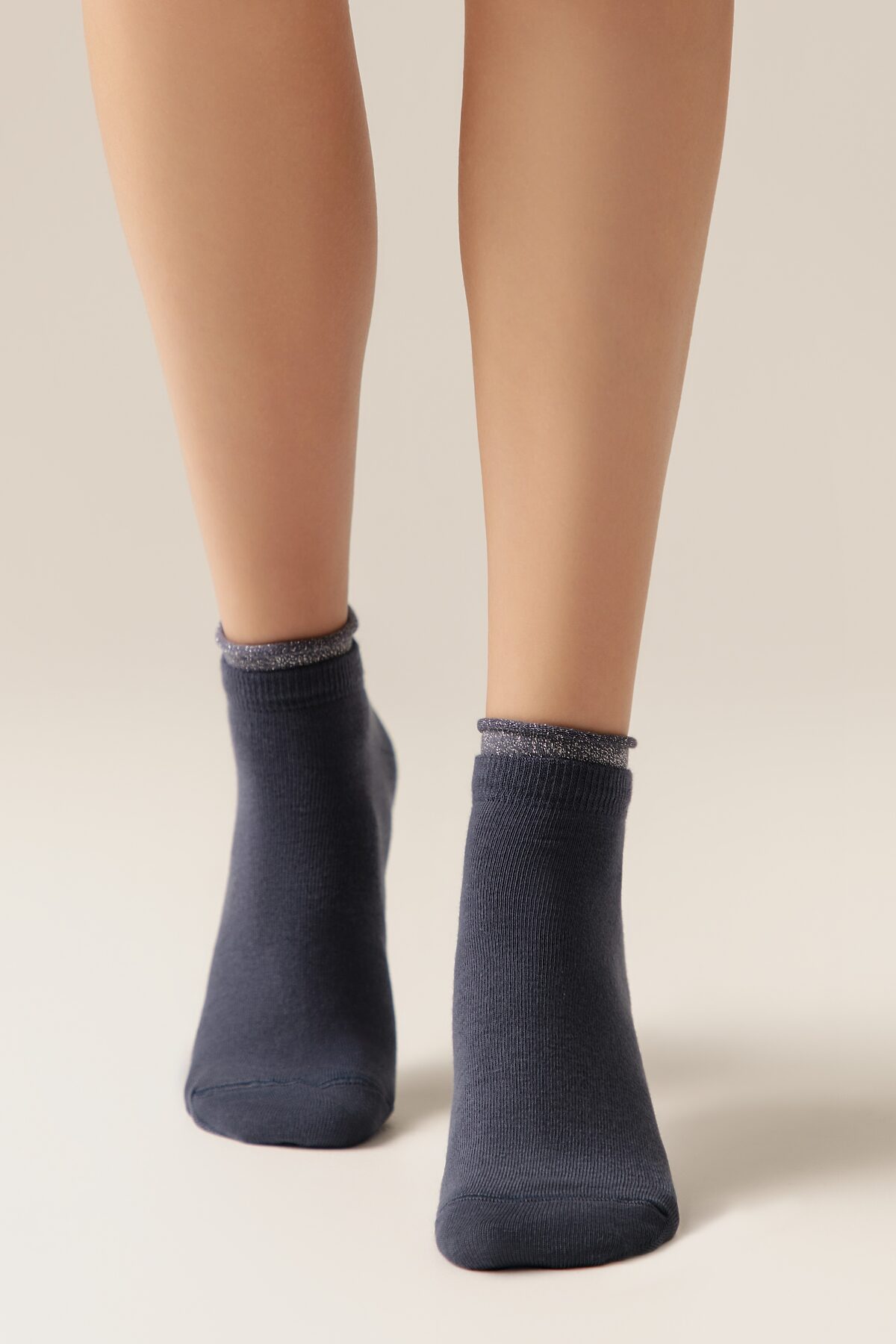Укороченные спортивные женские носки из хлопка, однотонные с контрастной декоративной отделкой по краю резинки.
