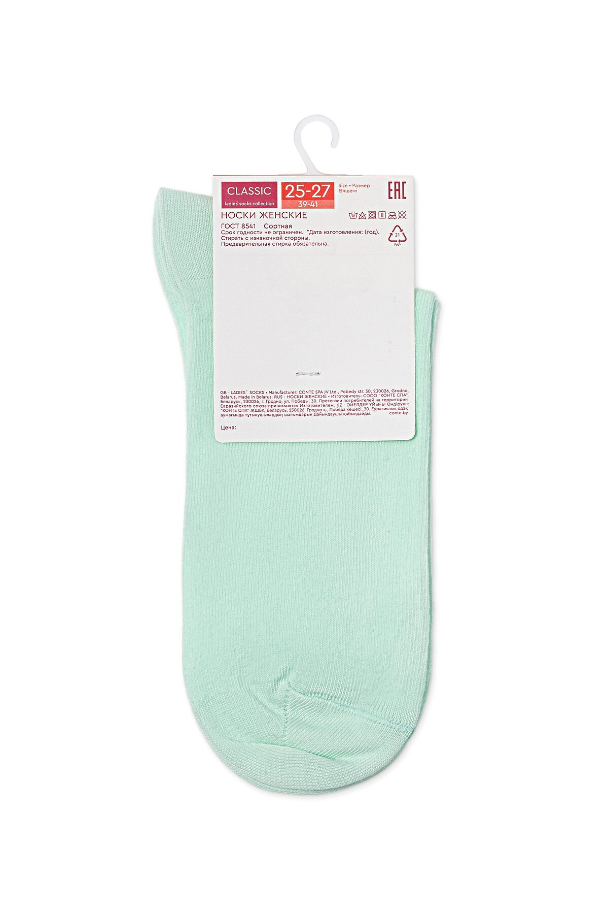 CONTE CLASSIC Носки женские хлопковые CONTE ELEGANT, бледно-бирюзовый