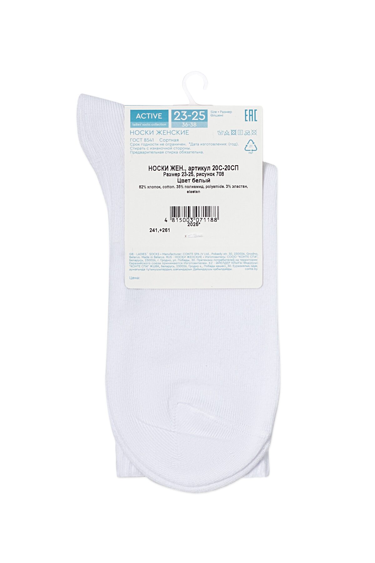 CONTE ACTIVE Носки женские хлопковые CONTE ELEGANT, white
