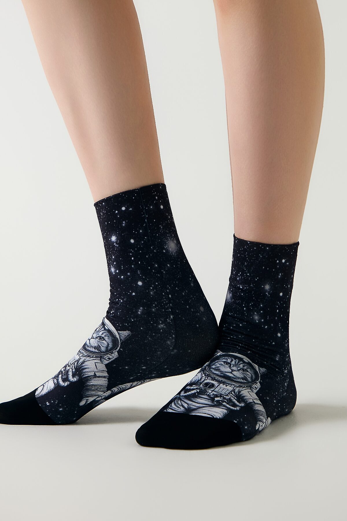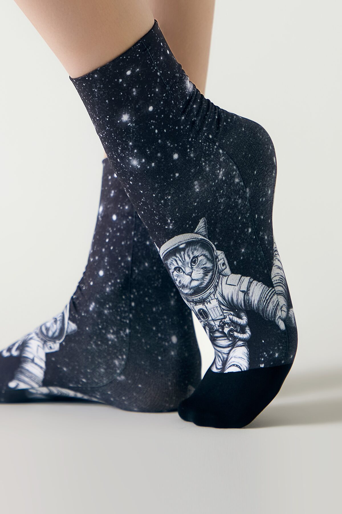 Плотные носки с особенно устойчивым рисунком, нанесенным с помощью термотрансферной печати, станут стильным и индивидуальным акцентом в повседневных образах. Термотрансферная печать – процесс, при котором специальная краска на бумажном носителе резко нагревается, переходит из твердого состояния в газообразное и переносится с бумаги на носки, глубоко проникая в волокна и создавая устойчивое изображение. · 70 den · плотное и эластичное волокно с микрофиброй · рисунок, нанесенный с помощью термотрасферной печати · эффект 3D · c бортом · без пятки · стиль начинается с индивидуальности.