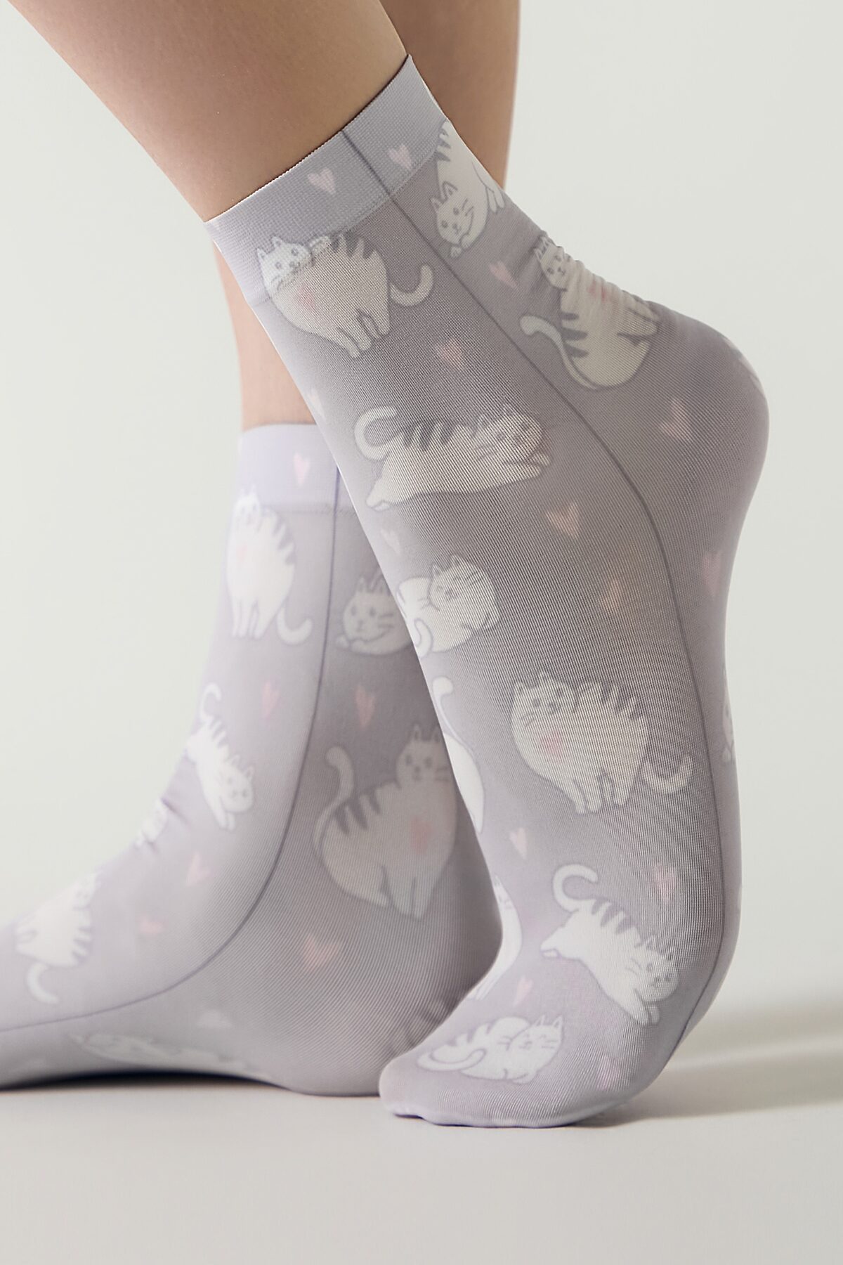 Мягкие и эластичные носки Fantasy выполнены с помощью термопечати, они станут отличным дополнением интересного образа и подарят вам абсолютный комфорт. Термотрансферная печать – процесс, при котором специальная краска на бумажном носителе резко нагревается, переходит из твердого состояния в газообразное и переносится с бумаги на носки, глубоко проникая в волокна и создавая устойчивое изображение. · 50 den · классическая длина · рисунок, нанесенный с помощью термотрасферной печати · с микрофиброй · c бортом · без пятки · мягкие и эластичные.