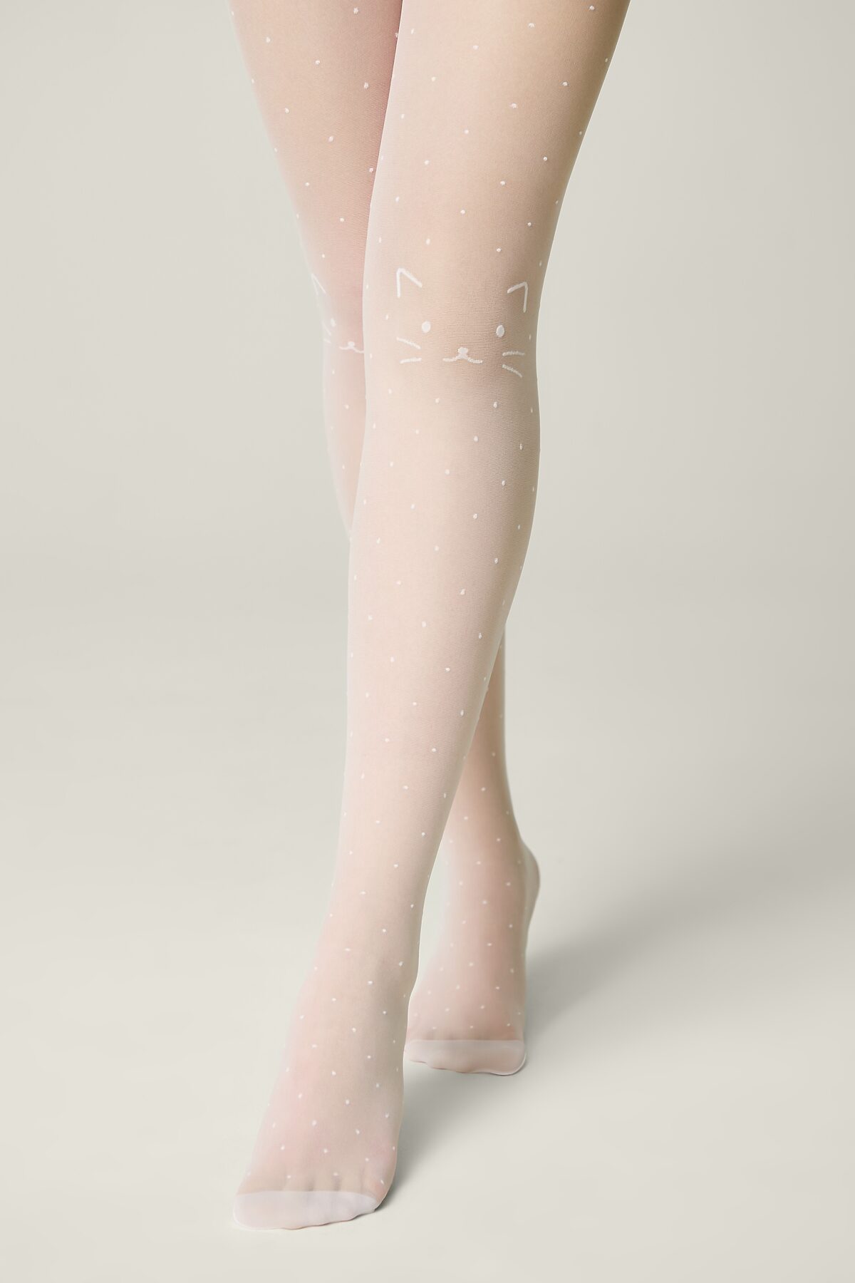 CONTE Колготки в точку с рисунком «кот» KATIE CONTE ELEGANT, bianco