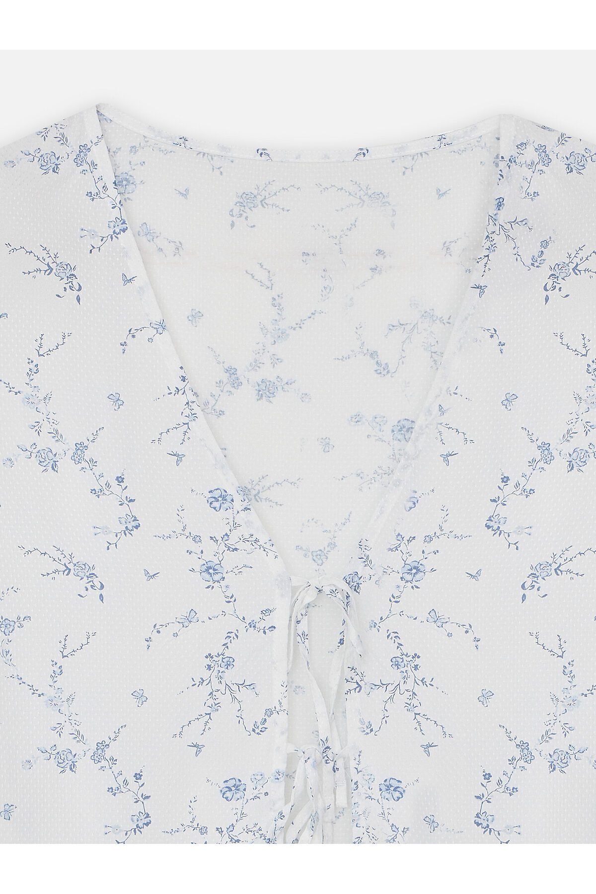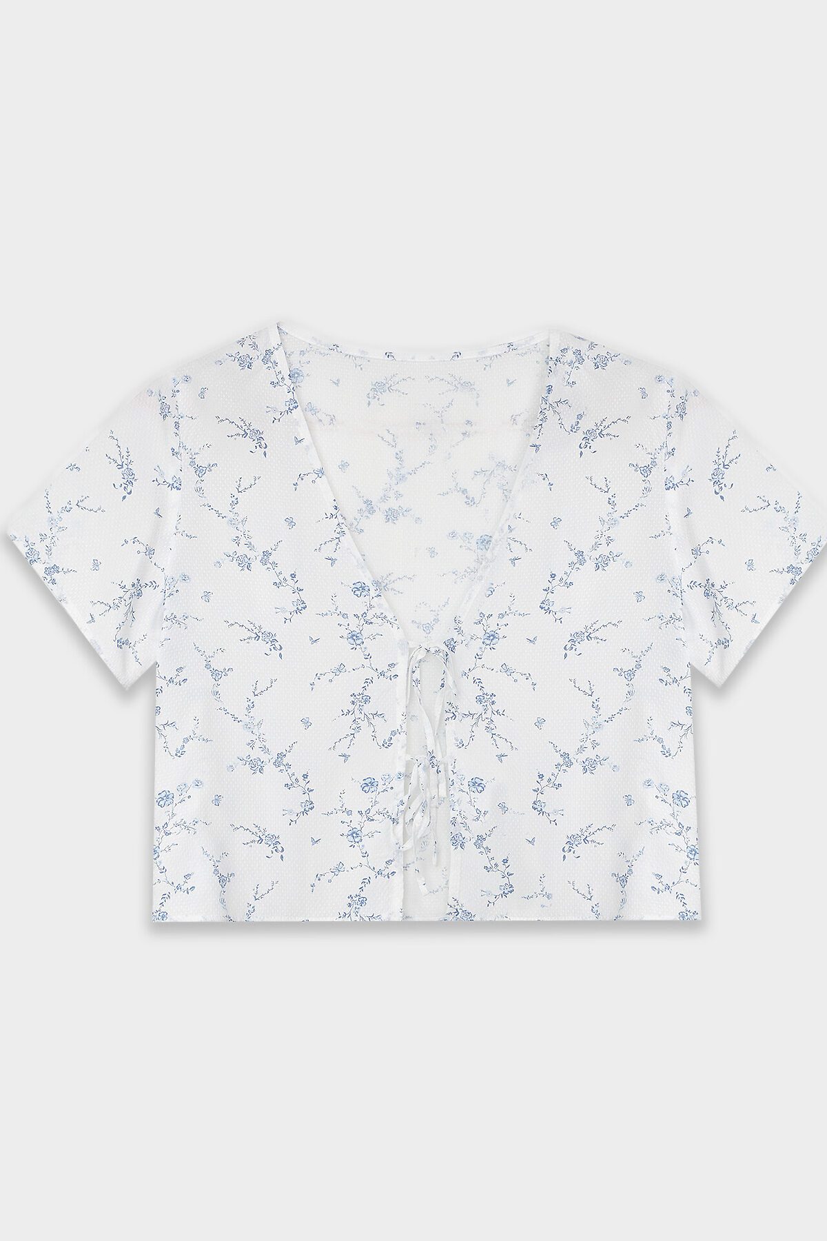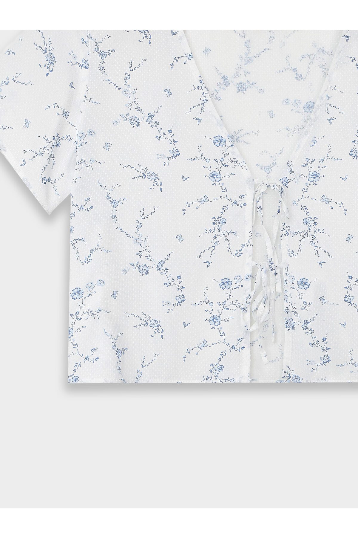 Комплект женский состоит из блузы и брюк. Блуза прямая короткая. Горловина V-образной формы. Горловина и борта обработаны бейкой из основного полотна. По переду центральная застежка на завязки. Рукава втачные короткие. Нижние срезы блузы и рукавов обработаны швом вподгибку с закрытым срезом. Брюки прямые свободные, посадка высокая. Пояс отрезной с эластичной тесьмой внутри (вн. 50мм 50RV). Нижний срез обработан швом вподгибку с закрытым срезом.