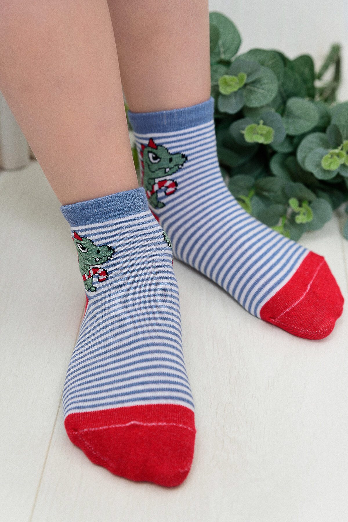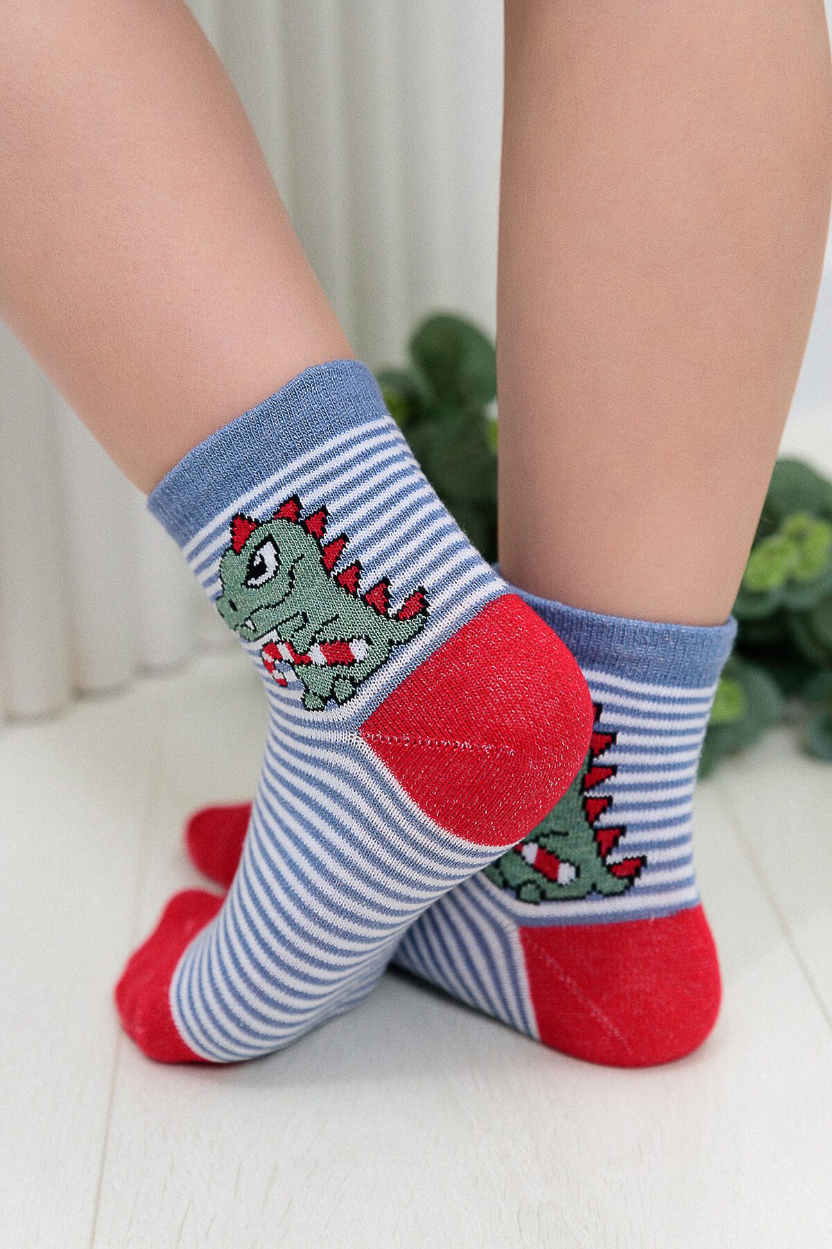 Детские носки с рисунком. Мягкая модель, очень комфортная и подходит для повседневной носки. Носочки в ярких цветах с веселым рисунком дракончика поднимут настроение как деткам, так и их родителям.