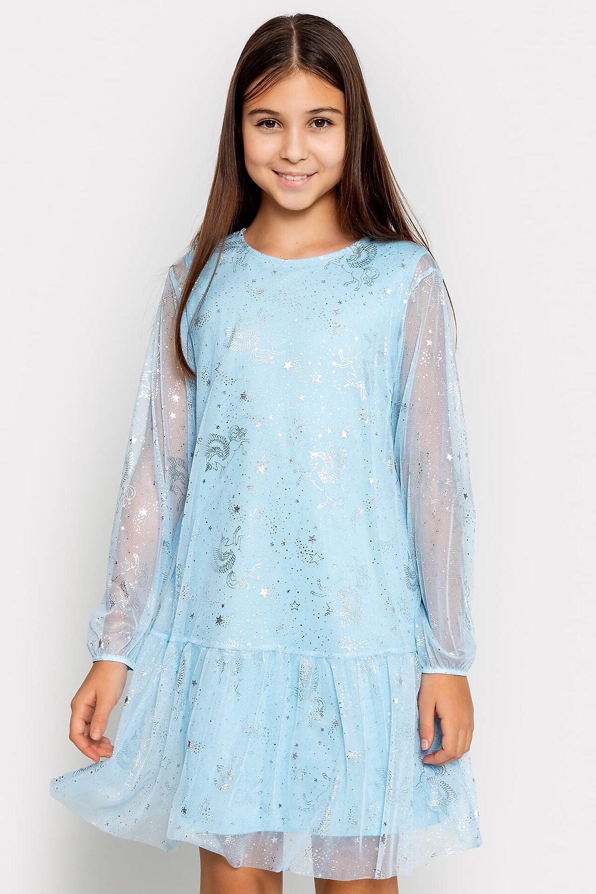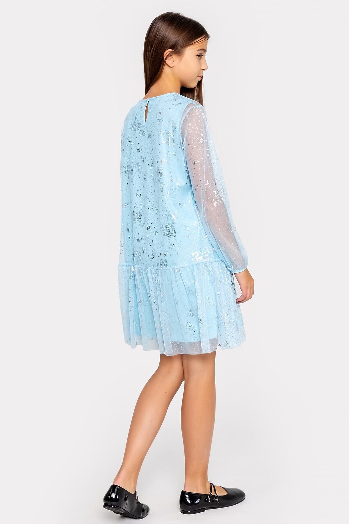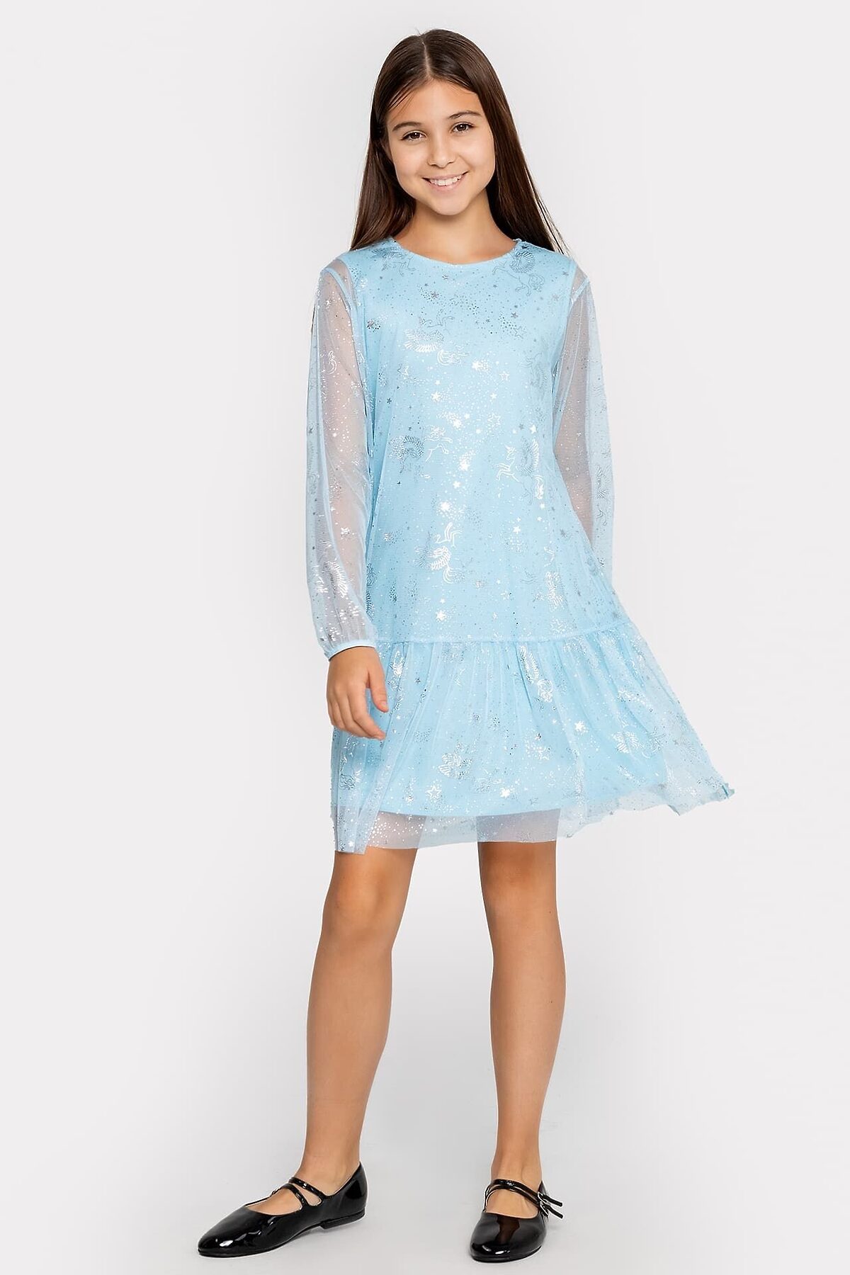 Нарядное платье А-образного силуэта для девочек. Изготовлено из полупрозрачной воздушной сетки с подкладкой из хлопковой кулирки. Вырез круглый, классический. На спинке застегивается на пуговицу. Рукава объемные, длинные. Отличный вариант для утренников и праздников!