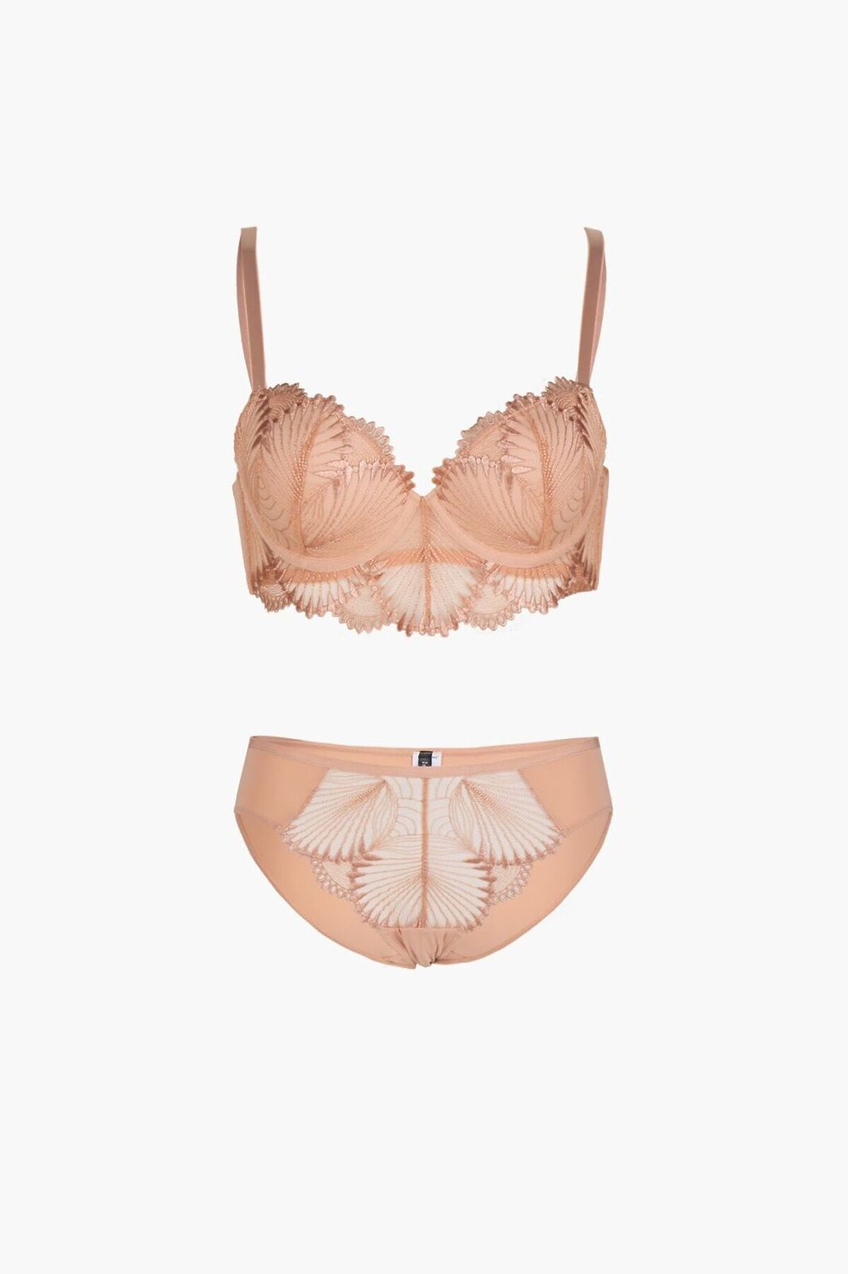 Комплект нижнего белья (Арт.3153WXY) включает бюстгальтер и трусы-слипы. Кружевной бюстгальтер бежевого цвета, без Push-Up, из полиамида, с косточками, регулируемые бретели. Кружевные трусы-слипы бежевого цвета, из полиамида, на мягкой резинке, средней посадки. К бюстгальтеру идут трусы-слипы, размерами: 75B-S, 75C-M, 80B-M, 80C-L, 75D-L, 80D-XL, 85C-XL.