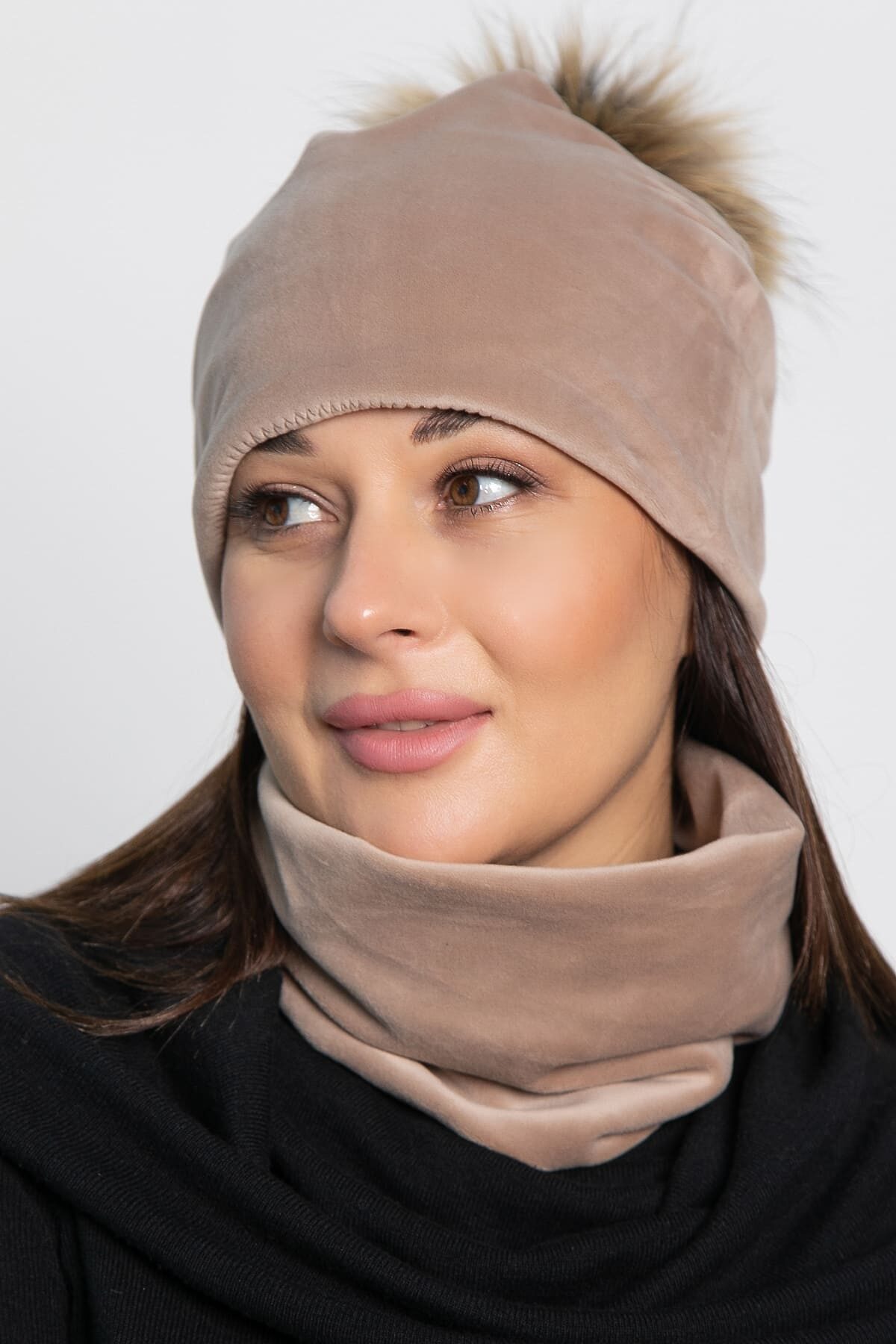 Комплект шапка с помпоном и снуд LADY TAIGA, бежевый