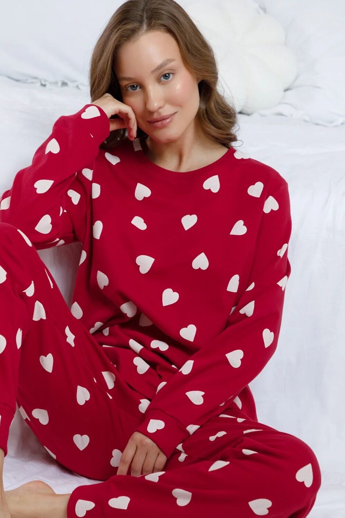 Комплект для комфортного сна и отдыха из трикотажного полотна с набивным рисунком. Джемпер с длинными втачными рукавами и брюки с мягкой эластичной резинкой в поясе, которые удобно садятся по фигуре. Гладкий материал приятен к телу, не теряет форму и позволяет коже дышать. На рукавах и по низу брюк мягкие манжеты. Все трикотажные полотна производятся в соответствии с нормами швейцарского сертификата ЭкоТекс.
