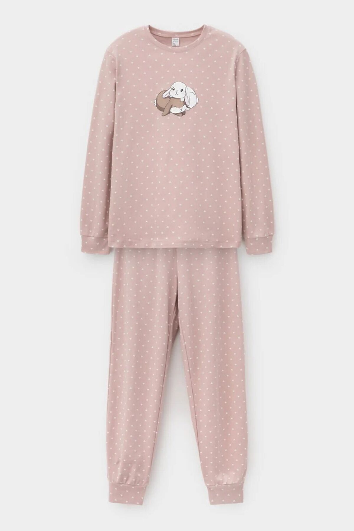 Комплект для комфортного сна и отдыха из трикотажного полотна с набивным рисунком. Джемпер с длинными втачными рукавами и брюки с мягкой эластичной резинкой в поясе, которые удобно садятся по фигуре. Гладкий материал приятен к телу, не теряет форму и позволяет коже дышать. На рукавах и по низу брюк мягкие манжеты. Все трикотажные полотна производятся в соответствии с нормами швейцарского сертификата ЭкоТекс.