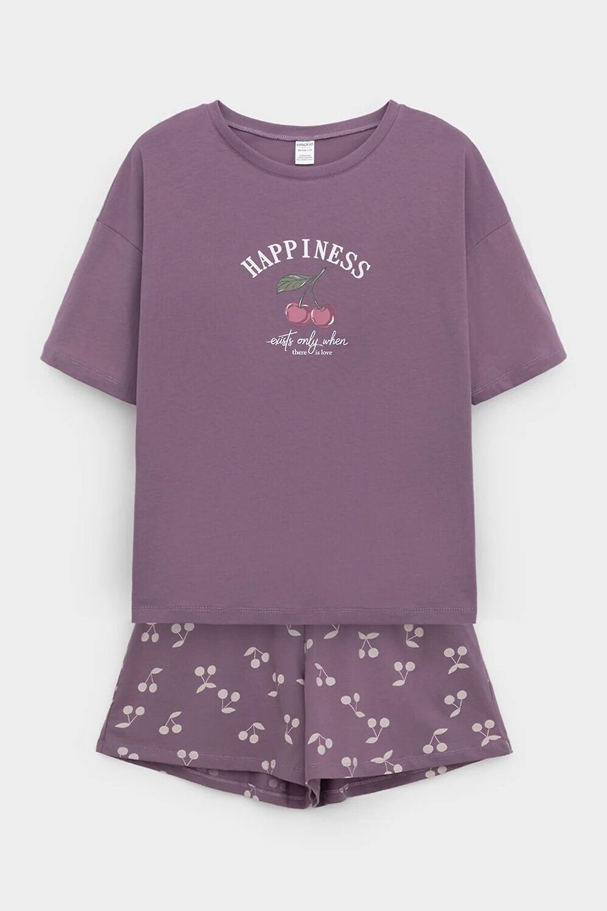 Комплект для комфортного сна и отдыха из трикотажного полотна с набивным рисунком и принтом. Футболка с короткими спущенными рукавами и шорты с мягкой эластичной резинкой в поясе, которые удобно садятся по фигуре. Гладкий материал приятен к телу, не теряет форму и позволяет коже дышать. Все трикотажные полотна производятся в соответствии с нормами швейцарского сертификата ЭкоТекс.
