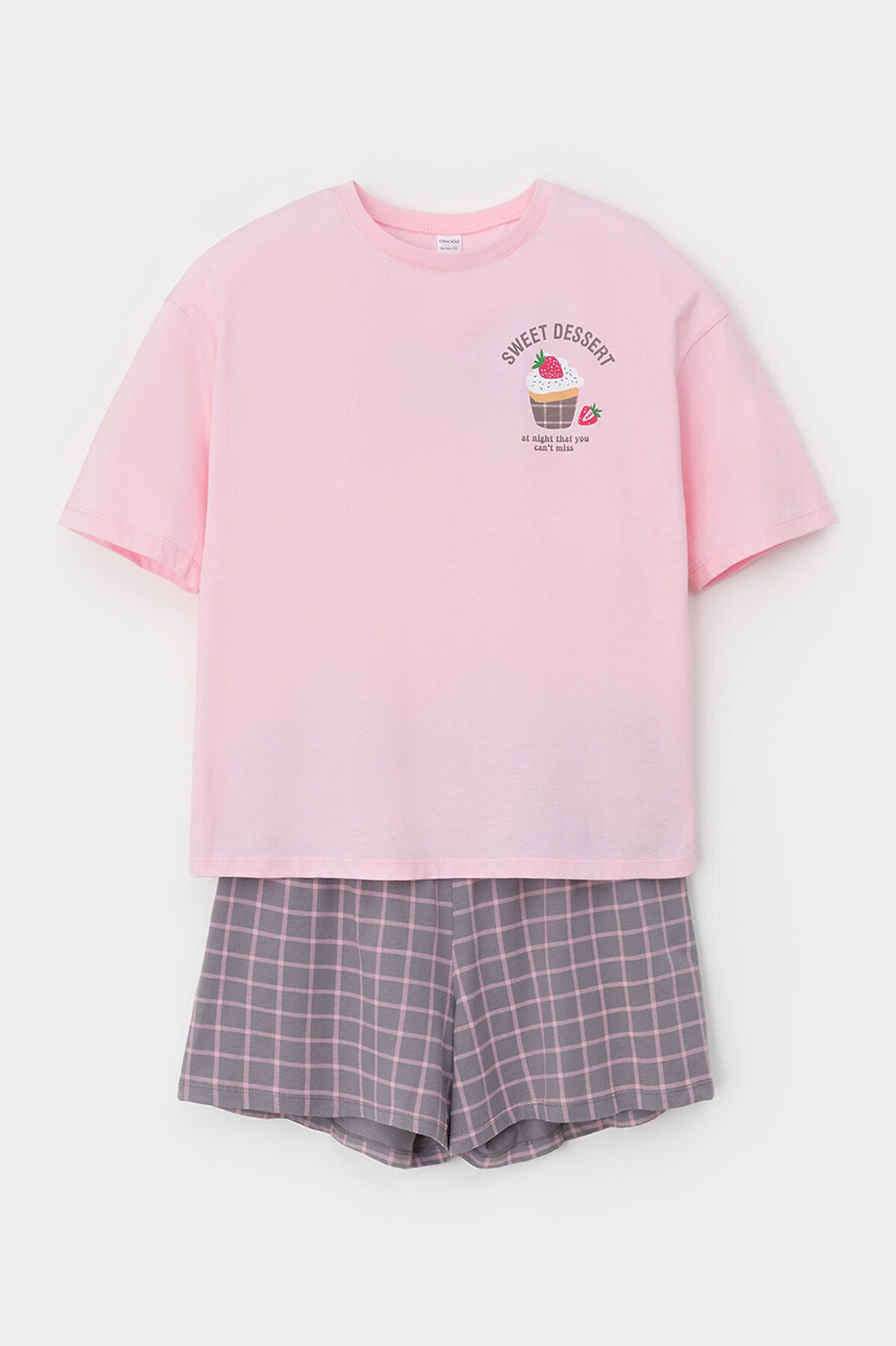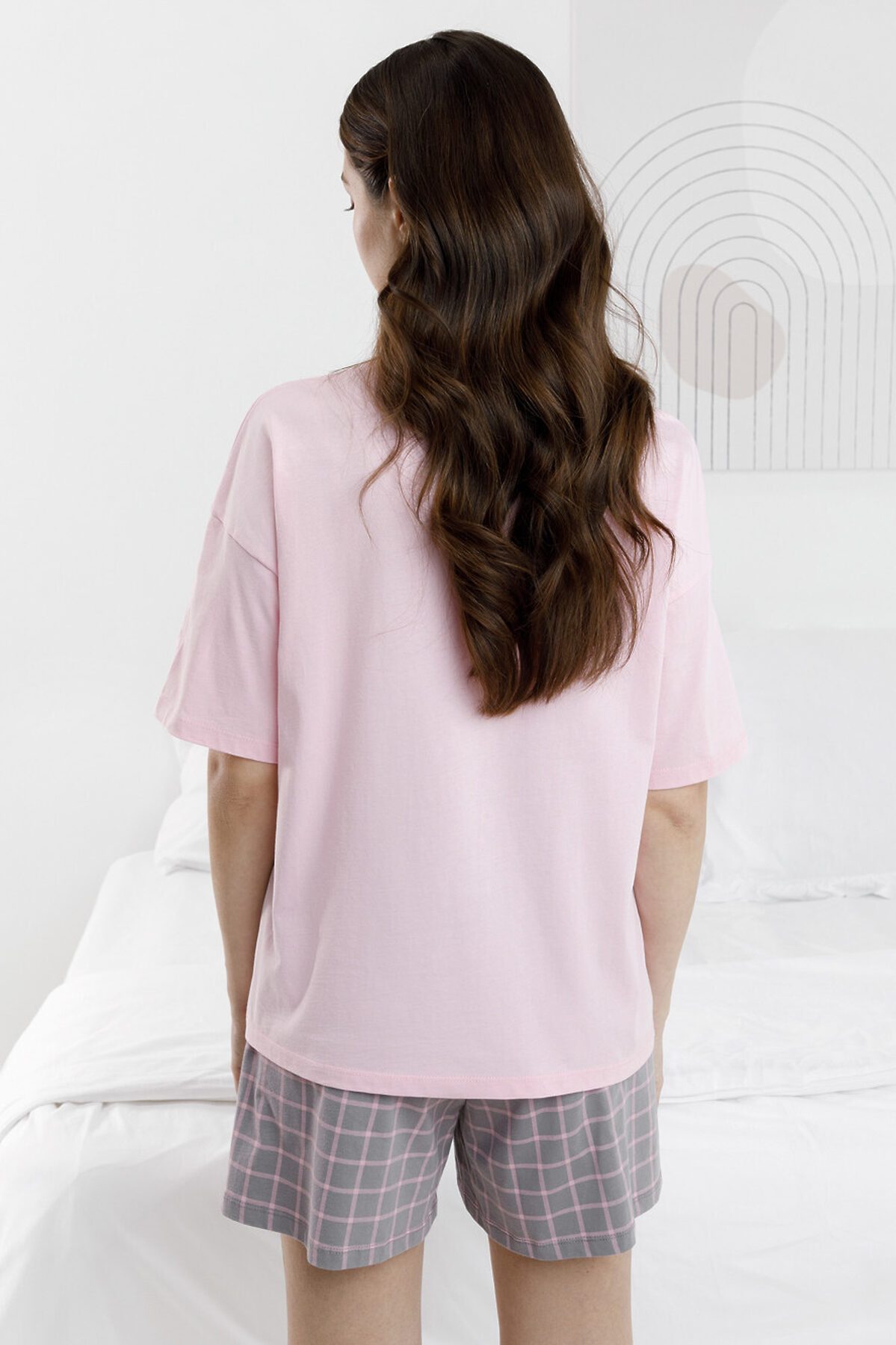 Комплект для комфортного сна и отдыха из трикотажного полотна с набивным рисунком и принтом. Футболка с короткими спущенными рукавами и шорты с мягкой эластичной резинкой в поясе, которые удобно садятся по фигуре. Гладкий материал приятен к телу, не теряет форму и позволяет коже дышать. Все трикотажные полотна производятся в соответствии с нормами швейцарского сертификата ЭкоТекс.