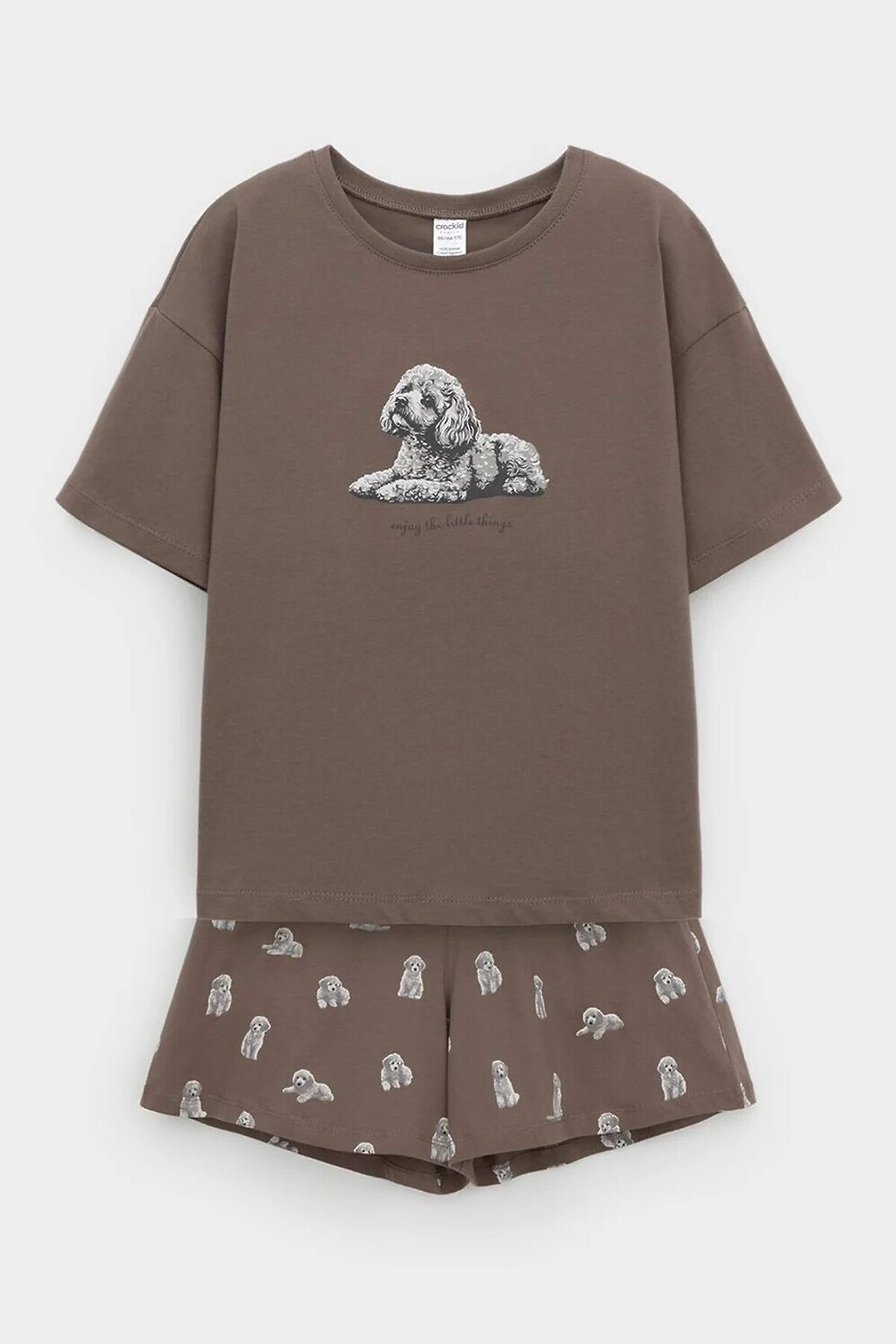 Комплект для комфортного сна и отдыха из трикотажного полотна с набивным рисунком и принтом. Футболка с короткими спущенными рукавами и шорты с мягкой эластичной резинкой в поясе, которые удобно садятся по фигуре. Гладкий материал приятен к телу, не теряет форму и позволяет коже дышать. Все трикотажные полотна производятся в соответствии с нормами швейцарского сертификата ЭкоТекс.
