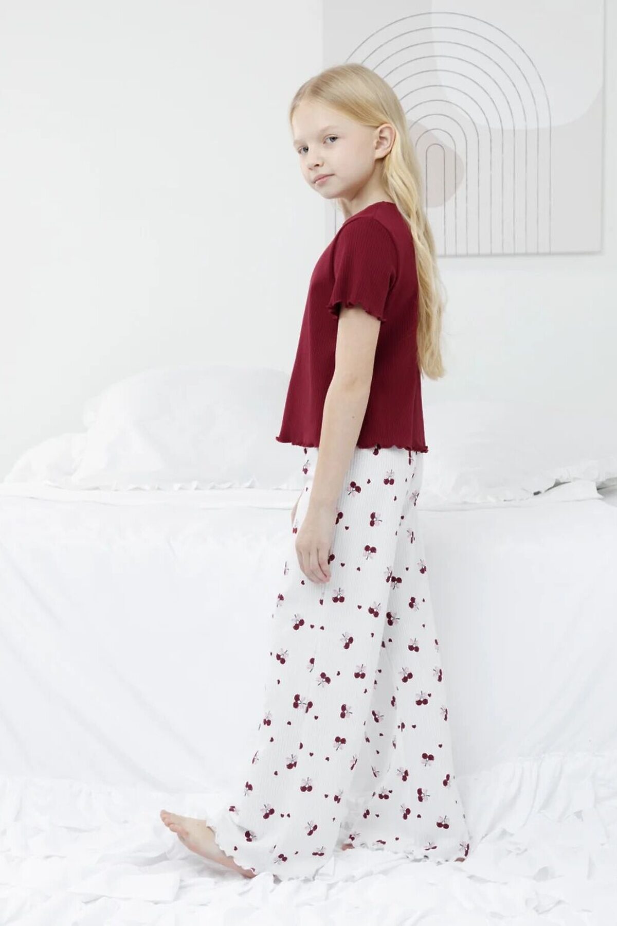 Пижама из трикотажа в рубчик для комфортного сна и отдыха. Эластичная футболка с короткими рукавами и широкие брюки с мягкой резинкой в поясе. Комплект изготовлен из 100% натурального хлопка. Материал приятен к телу, не теряет форму и позволяет коже дышать. Оригинальный рисунок выполнен из стойких текстильных гипоаллергенных красителей. Все трикотажные полотна производятся в соответствии с нормами швейцарского сертификата ЭкоТекс.