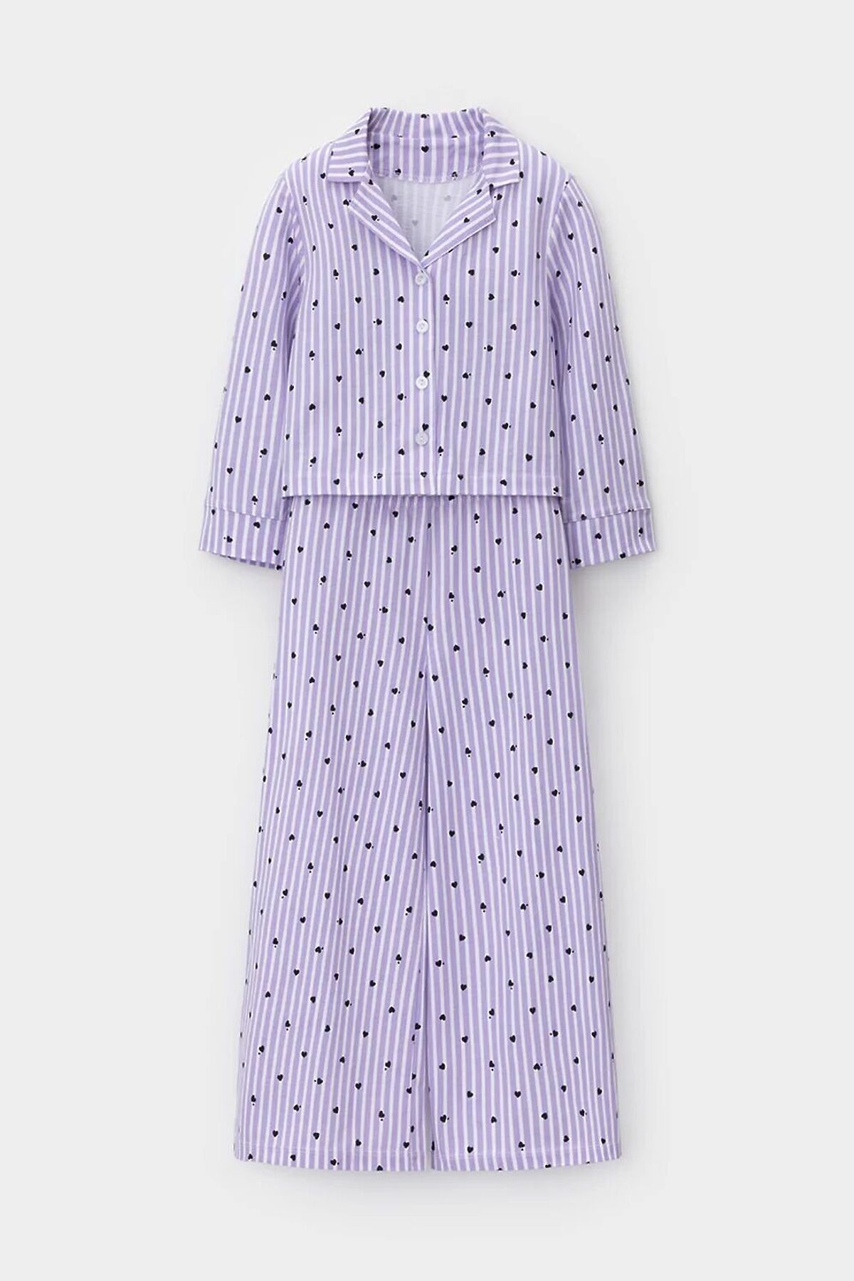 Трикотажная пижама из натурального хлопка для комфортного сна и отдыха. Рубашка на пуговицах с длинными рукавами и широкие брюки с мягкой эластичной резинкой в поясе. Набивной рисунок выполнен из стойких текстильных гипоаллергенных красителей. Изделие сохраняет цвет и форму после многократных стирок. Все трикотажные полотна производятся в соответствии с нормами швейцарского сертификата ЭкоТекс.