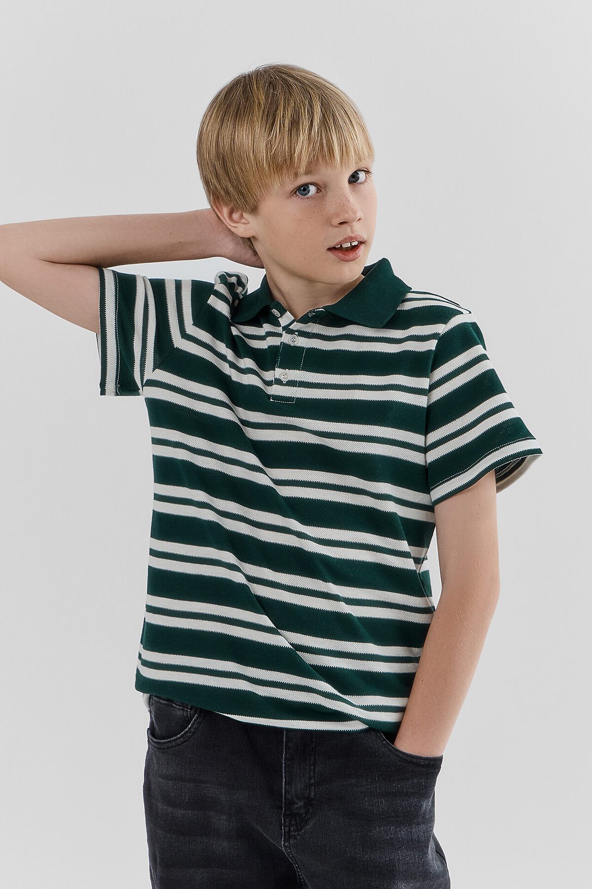 Поло для мальчиков MARK FORMELLE, т.зеленая полоска на молочном