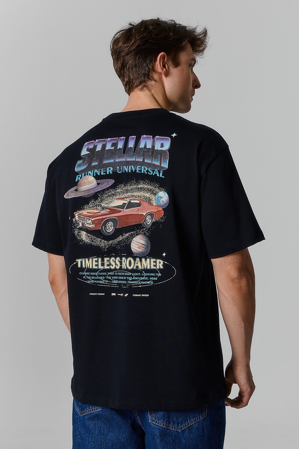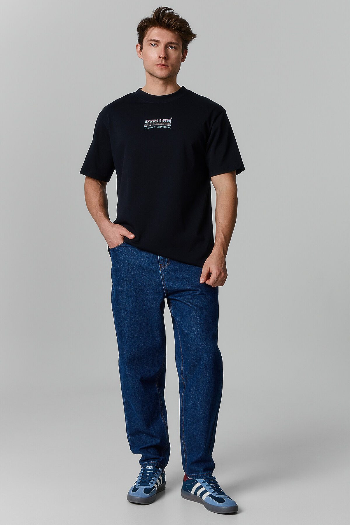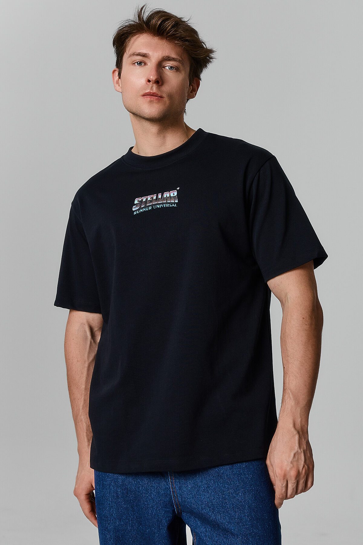 Мужская футболка свободного силуэта из натурального хлопка сочетает комфорт и стиль, становясь отличным вариантом для повседневного гардероба. Круглая горловина плотно прилегает к шее, создавая аккуратный и классический внешний вид, а спущенная линия плеча придает расслабленный современный акцент. Длина рукава чуть выше локтя делает модель удобной и универсальной, позволяя легко комбинировать ее с различными предметами одежды. Высококачественный натуральный хлопок обеспечивает мягкость, воздухопроницаемость и комфорт при носке в любое время года. Футболка идеально сочетается с джинсами, брюками, спортивными элементами гардероба и подходит для разных стилей. В линейке представлена широкая размерная сетка, базовые цвета, а также варианты с принтами и декоративными элементами, позволяя подобрать модель, соответствующую индивидуальному стилю.