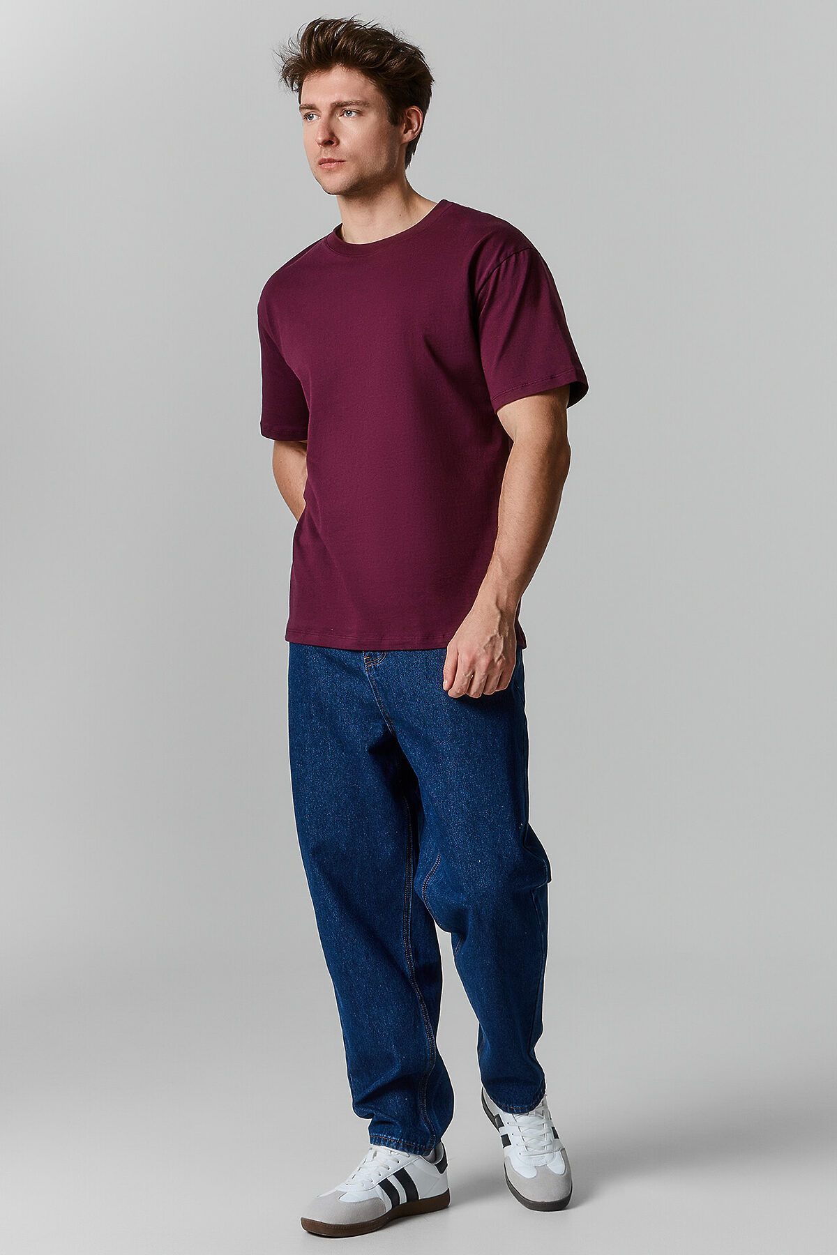 Мужская футболка свободного силуэта — это комфортная и универсальная модель, которая легко впишется в повседневный гардероб. Выполненная из натурального хлопка, она дарит ощущение мягкости и свободы, хорошо дышит и сохраняет форму даже при активной носке. Круглая горловина с обтачкой из рибаны аккуратно оформлена и устойчива к растяжению, а спущенное плечо и углубленная пройма создают расслабленный и современный силуэт. Рукав чуть выше локтя — оптимальная длина, которая добавляет функциональности и визуального баланса. Футболка легко сочетается с джинсами, брюками, шортами и спортивной одеждой, становясь базой для разных образов — от городского до домашнего.