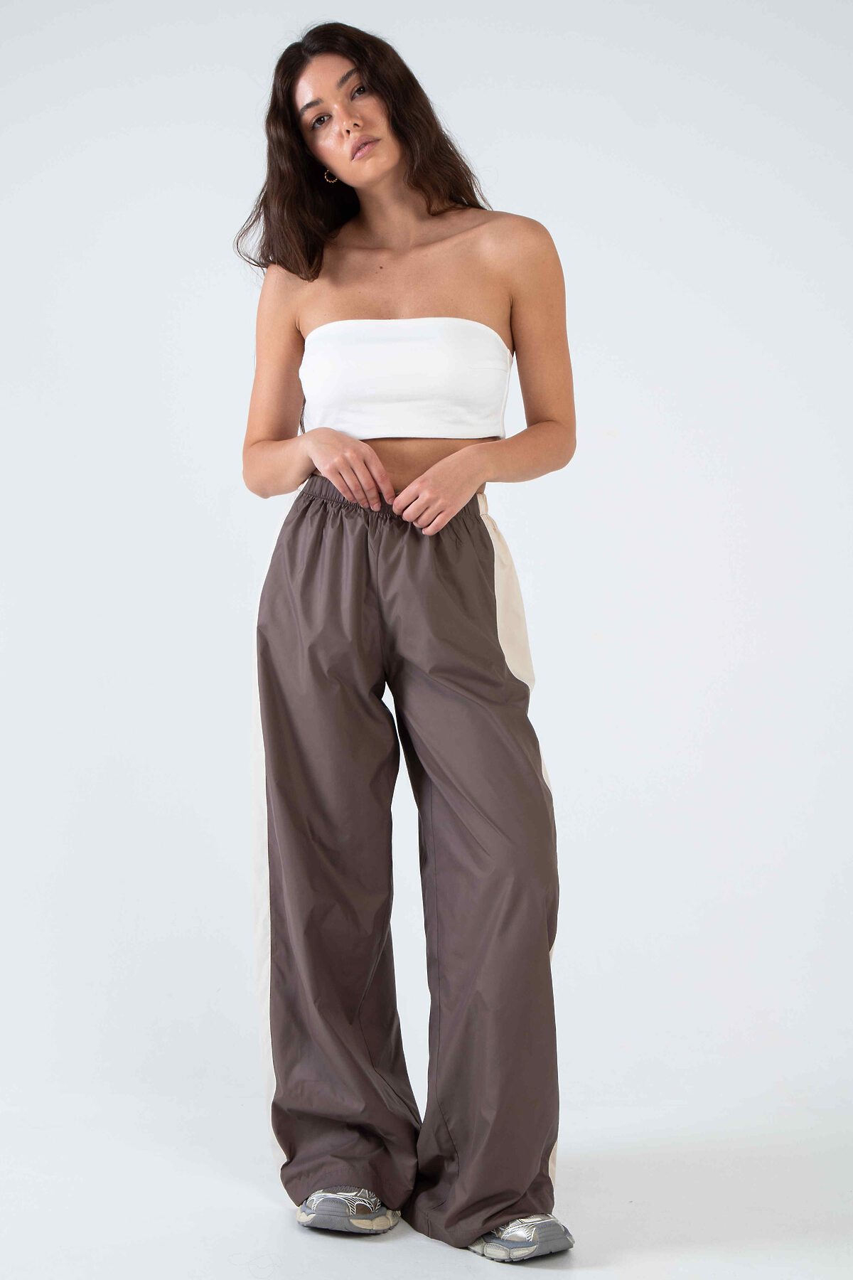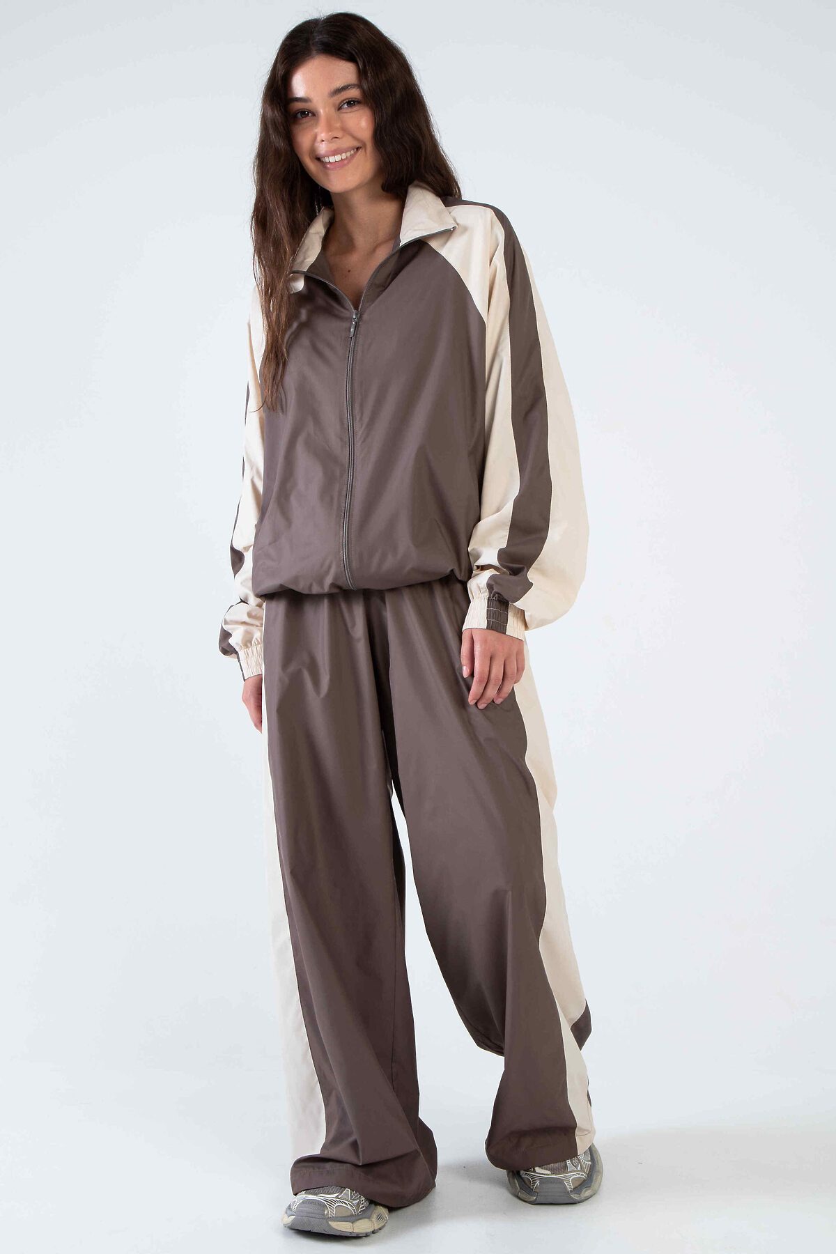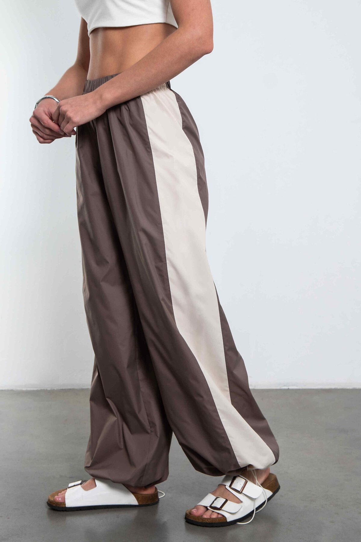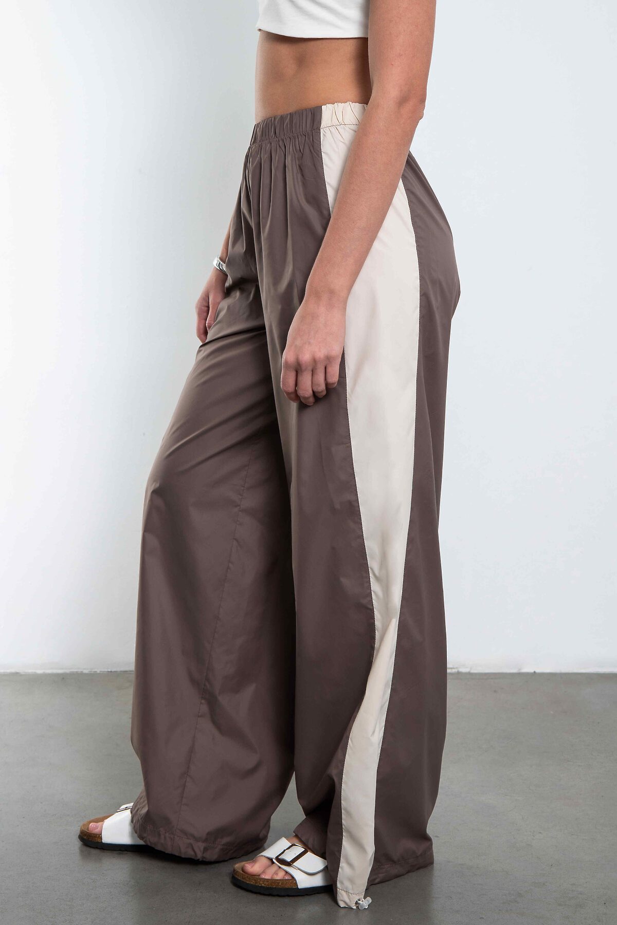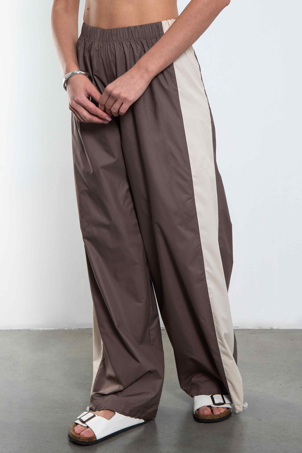 Брюки-трансформеры из премиальной курточной ткани — когда хочется свободы одним движением руки.Мягкая и приятная к телу курточная ткань премиум-класса с качественной подкладкой — не шуршит, не топорщится, держит форму и выглядит дорого даже в движении. Высокая посадка + эластичная кулиска по низу штанины — это твоя суперсила: Затянул — получишь стильные зауженные джоггеры с модным объёмом сверху Распустил — и вот уже свободные, струящиеся широкие брюки с идеальной длиной и лёгким небрежным фалдом Боковые лампасы-контрасты добавляют характера.Идеальны и с кроп-топом и кроссовками. От утреннего кофе до вечерней прогулки — они всегда выглядят так, будто ты точно знаешь, что делаешь.Потому что эти брюки — не просто одежда. Это настроение «я могу всё» в одном предмете гардероба.