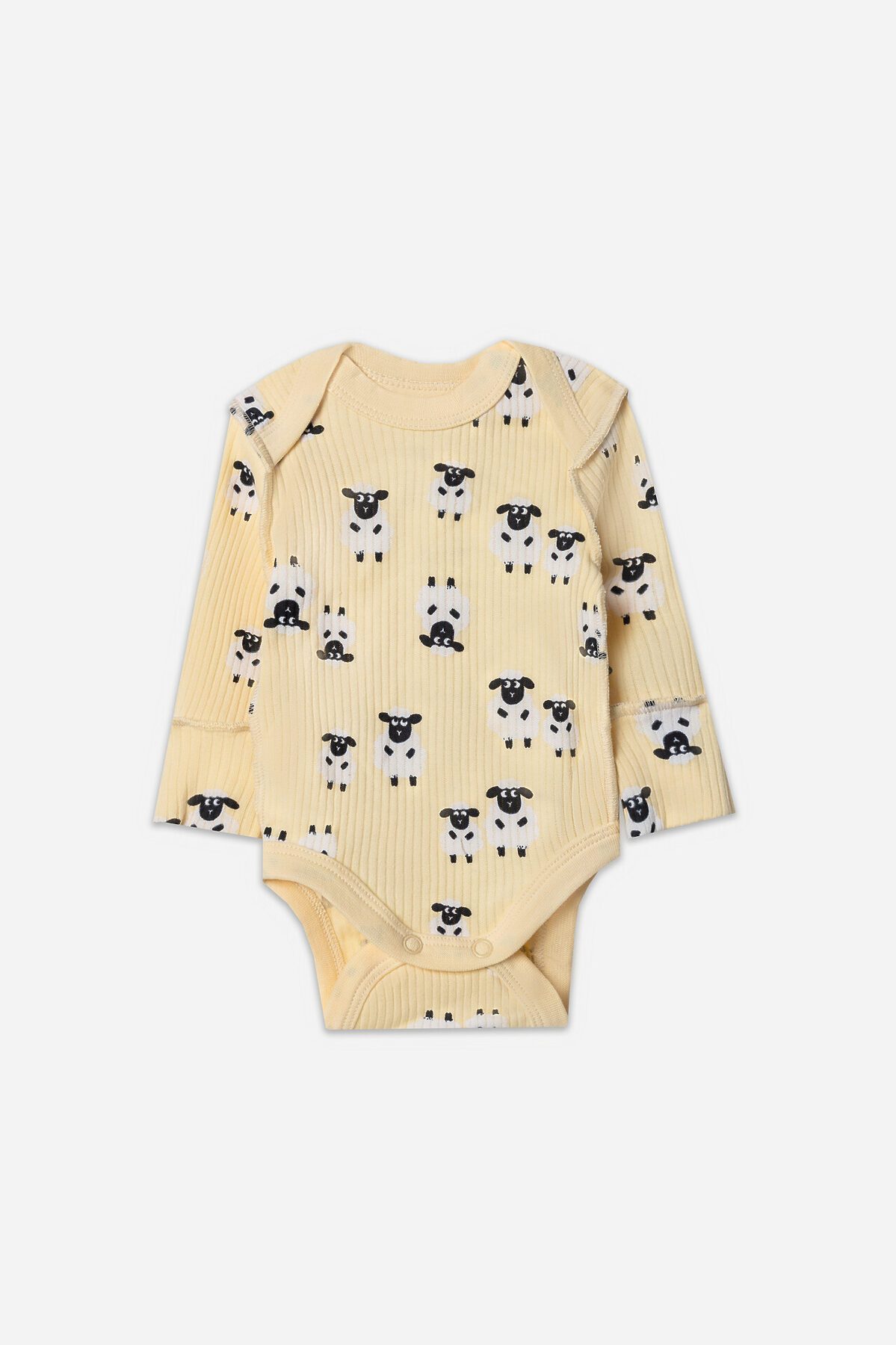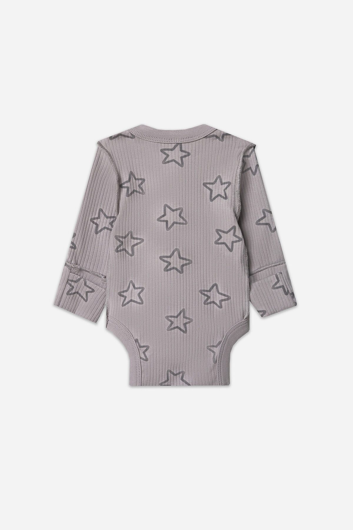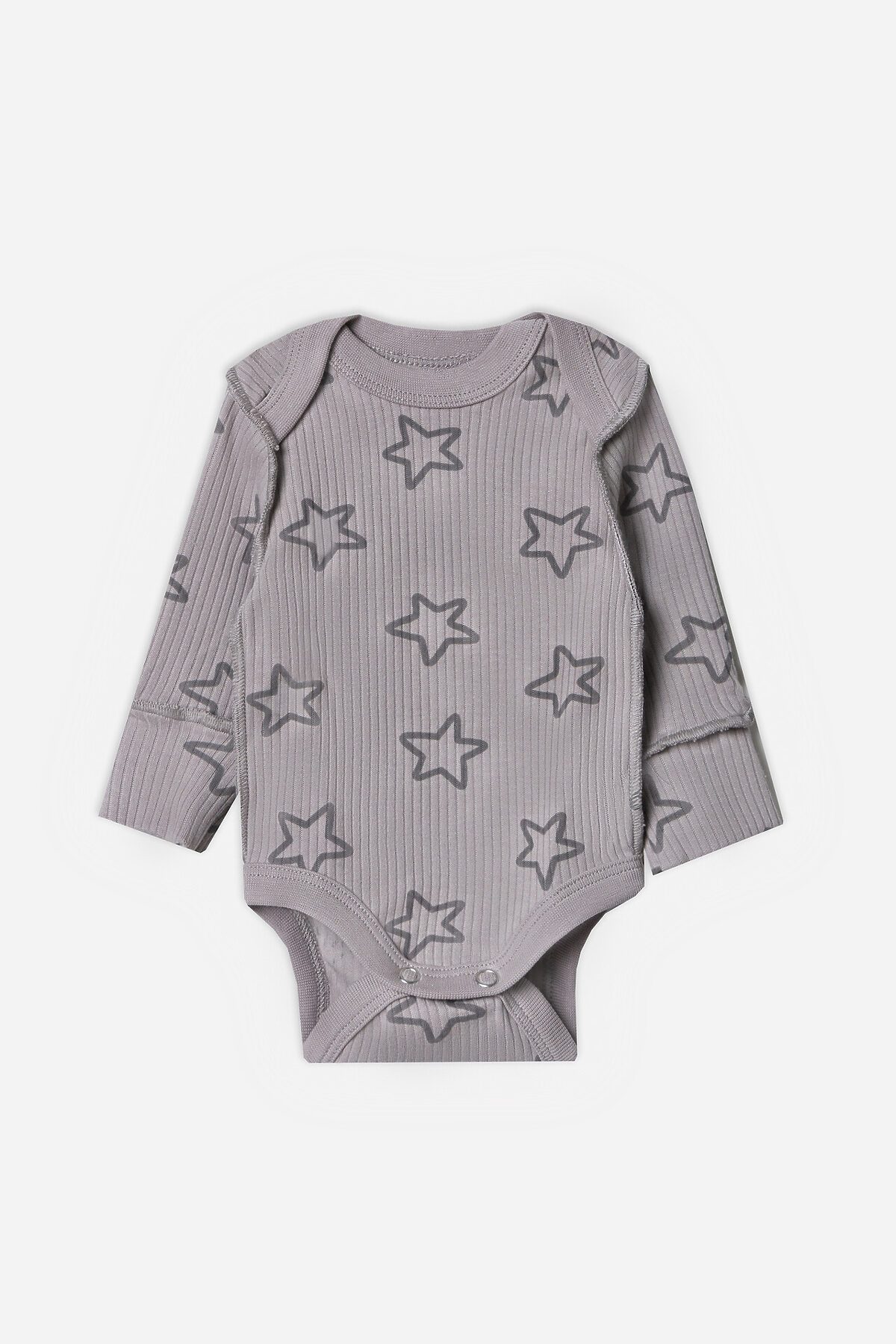 Круглая горловина и все срезы аккуратно окантованы мягкой бейкой, которая нежно прилегает к телу. Длинные рукава с защитными «царапками» надежно закрывают ручки малыша, предотвращая случайные царапины.