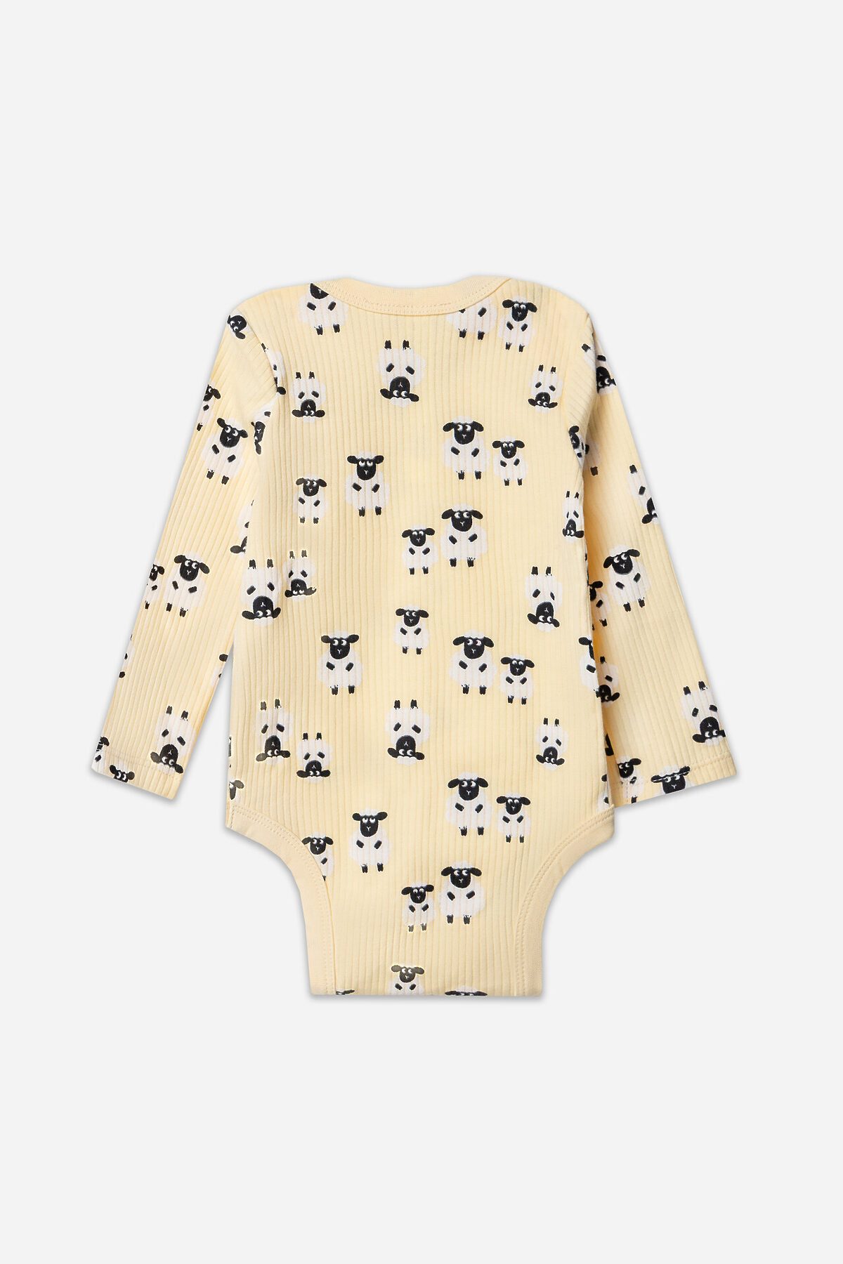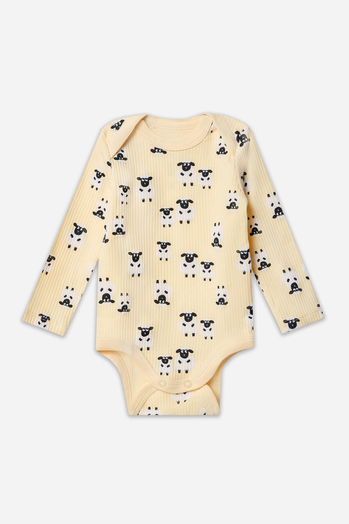 Специальная кокетка на спинке и удлиненная вставка между ножек упрощают смену подгузника. Круглая горловина и все края изделия обработаны эластичной мягкой резинкой, которая нежно облегает тело, не сдавливая и не натирая. Длинные рукава с аккуратно подогнутыми краями не сползают и сохраняют тепло.