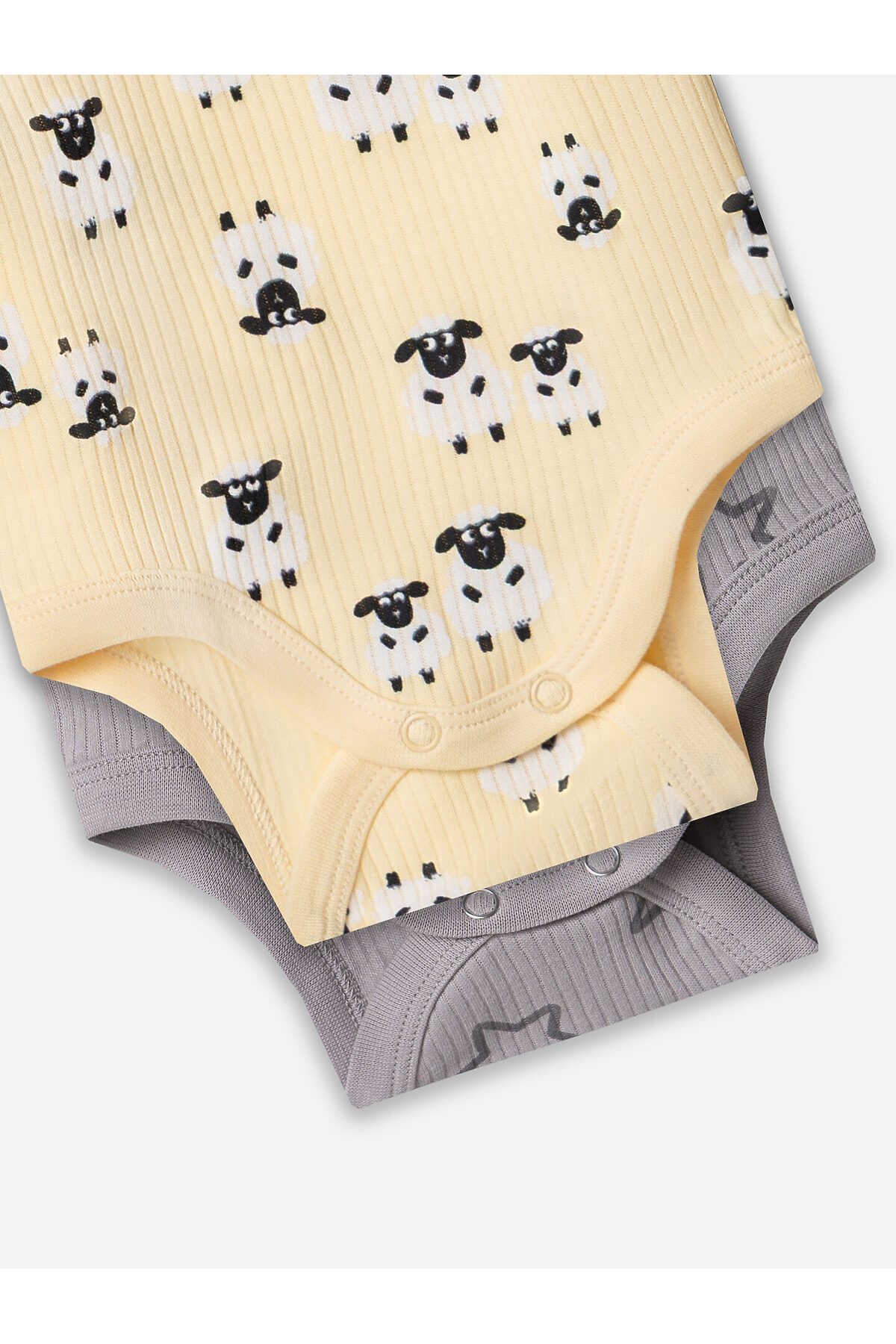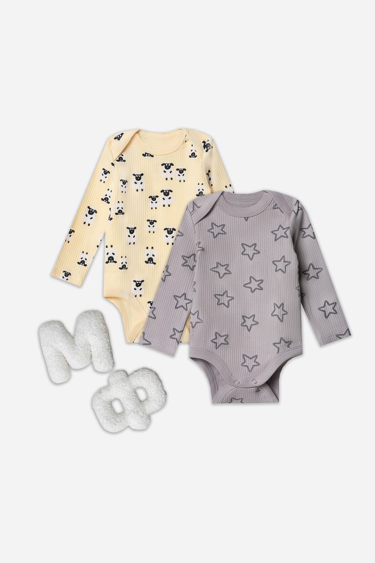 Боди детское (2шт.) MARK FORMELLE, барашки на абрикосовом +звездочки на сером