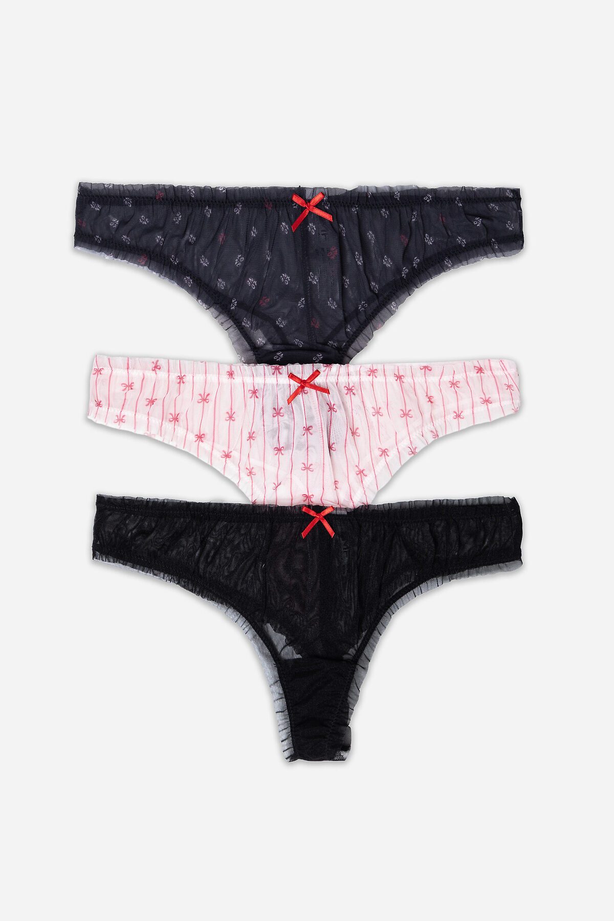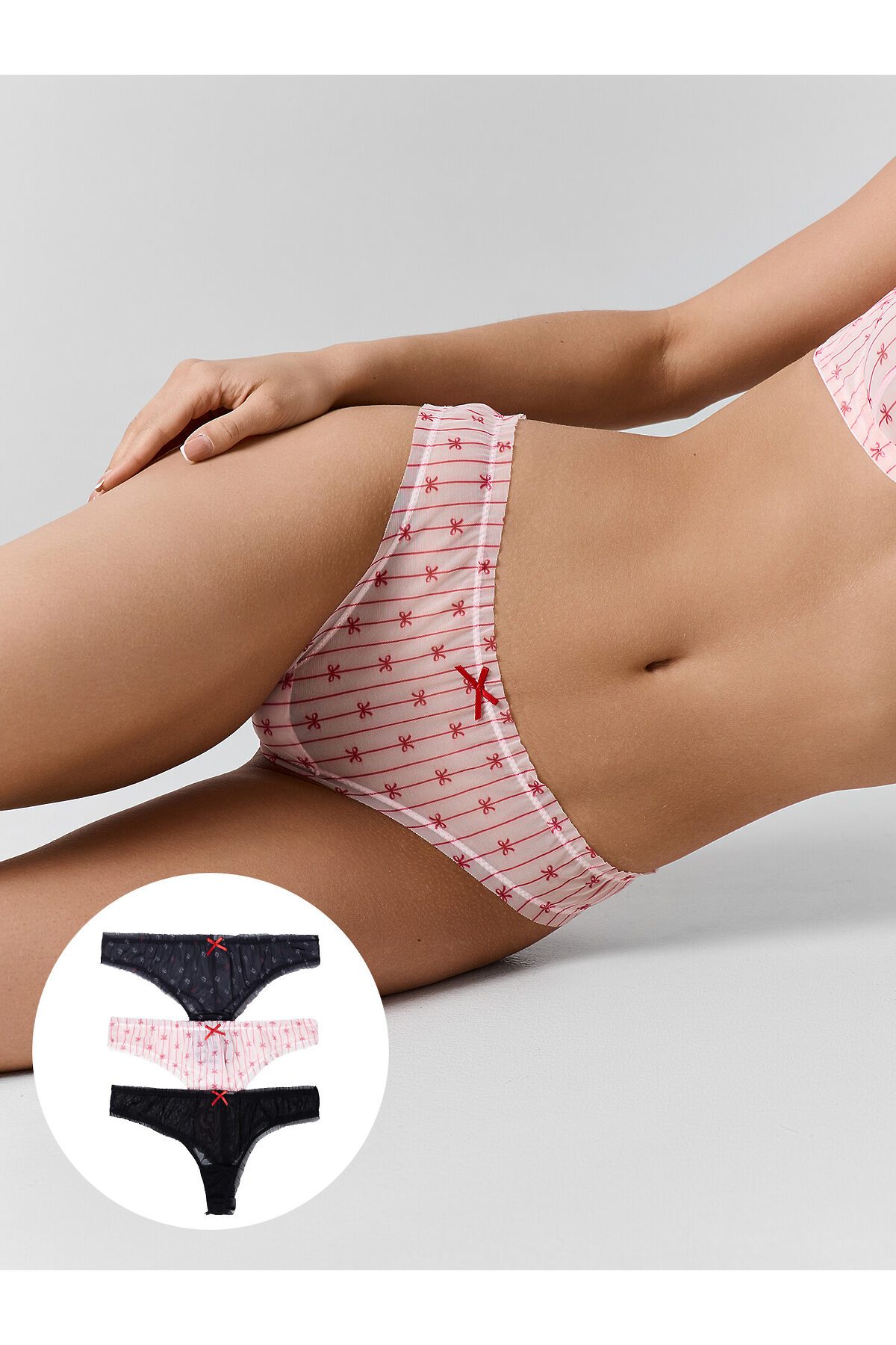 Восхитительные женские трусы модели бразилиана из эластичного сетчатого материала созданы для современных женщин, ценящих и комфорт, и изысканность. Набор из трех пар трусов бразилиана сочетает в себе практичность и элегантный дизайн, что делает их идеальным выбором для любого случая.