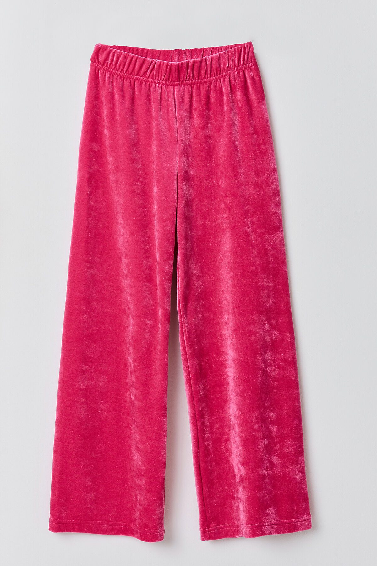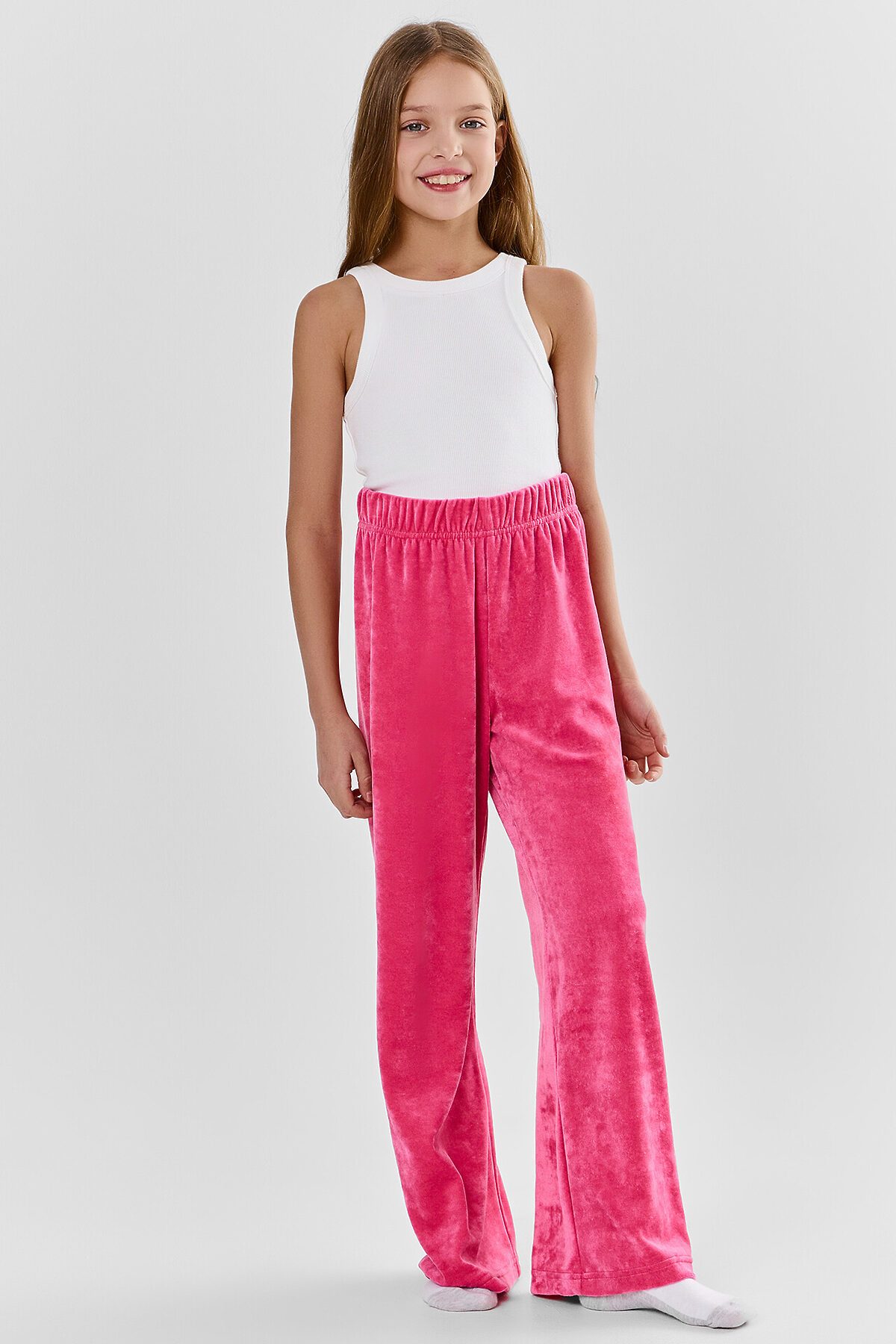 Брюки домашние для девочек свободного силуэта, длинные. Пояс цельнокроеный с эластичной тесьмой внутри (внутрення резина Rv40), ширина 40 мм. Низ обработан на 2-х игольной плоскошовной машине швом в подгибку.