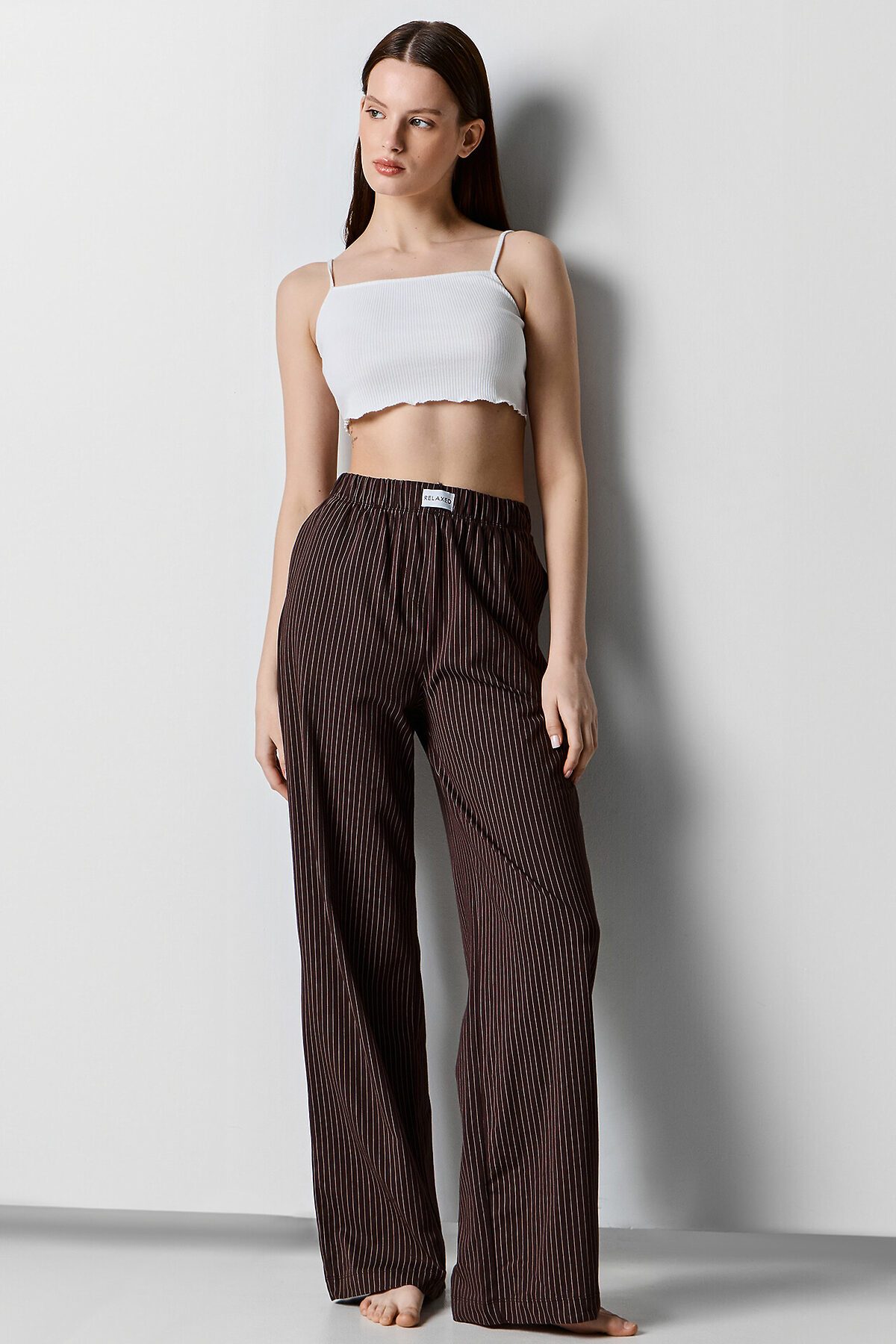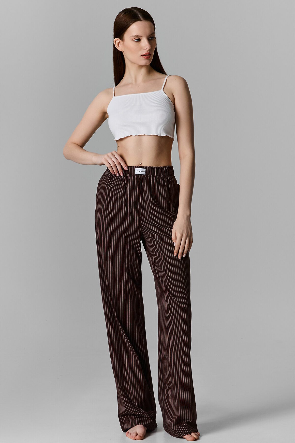 Женские домашние брюки, созданные для тех, кто ценит комфорт и элегантность в повседневной одежде. Они идеально подходят для домашних дел или расслабленных вечеров. Свободный силуэт обеспечивает максимальную свободу движений, а эластичный пояс гарантирует идеальную посадку без чувства стеснения. Практичные карманы в шве добавляют удобства, позволяя держать мелочи под рукой. Изготовленные из высококачественной хлопковой кулирки, эти брюки станут незаменимым элементом вашего домашнего гардероба, даря тепло и уют в любую погоду.