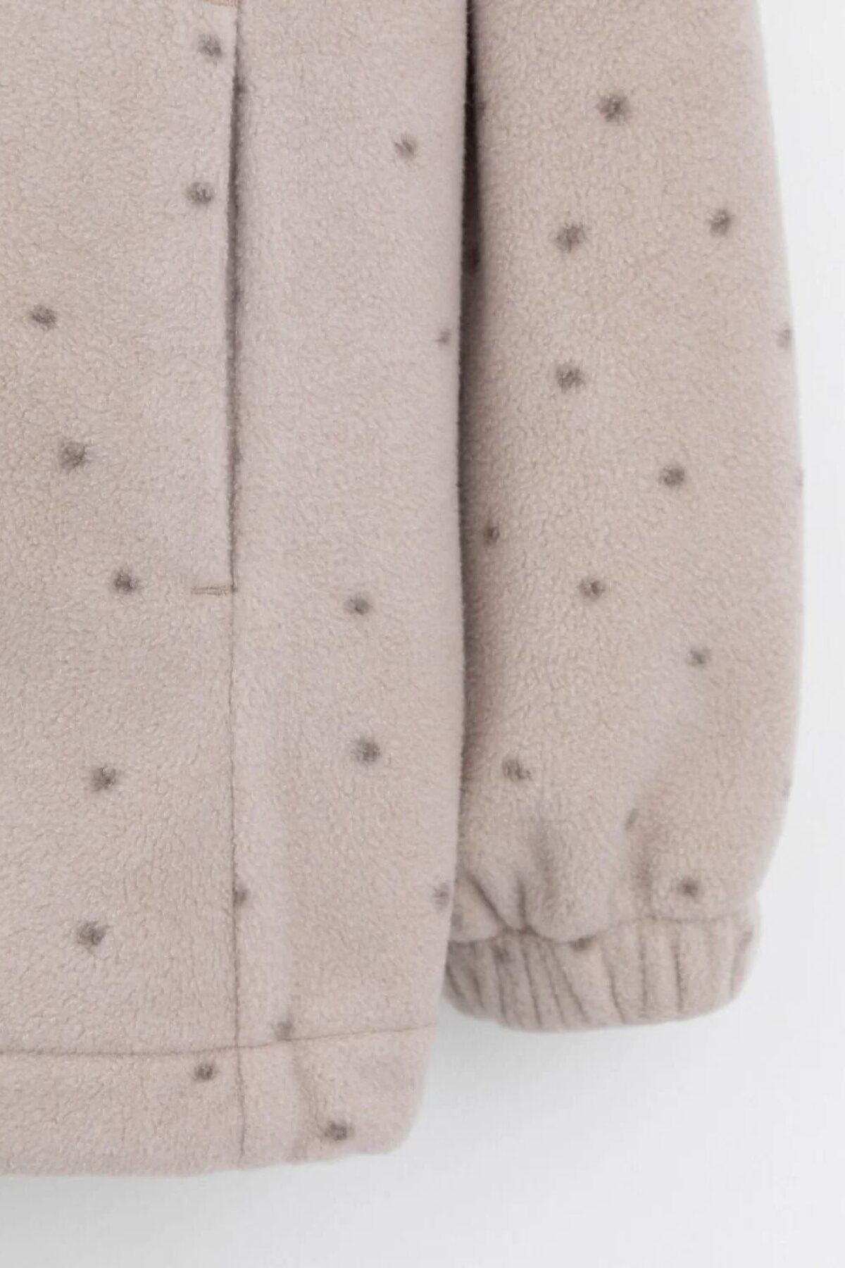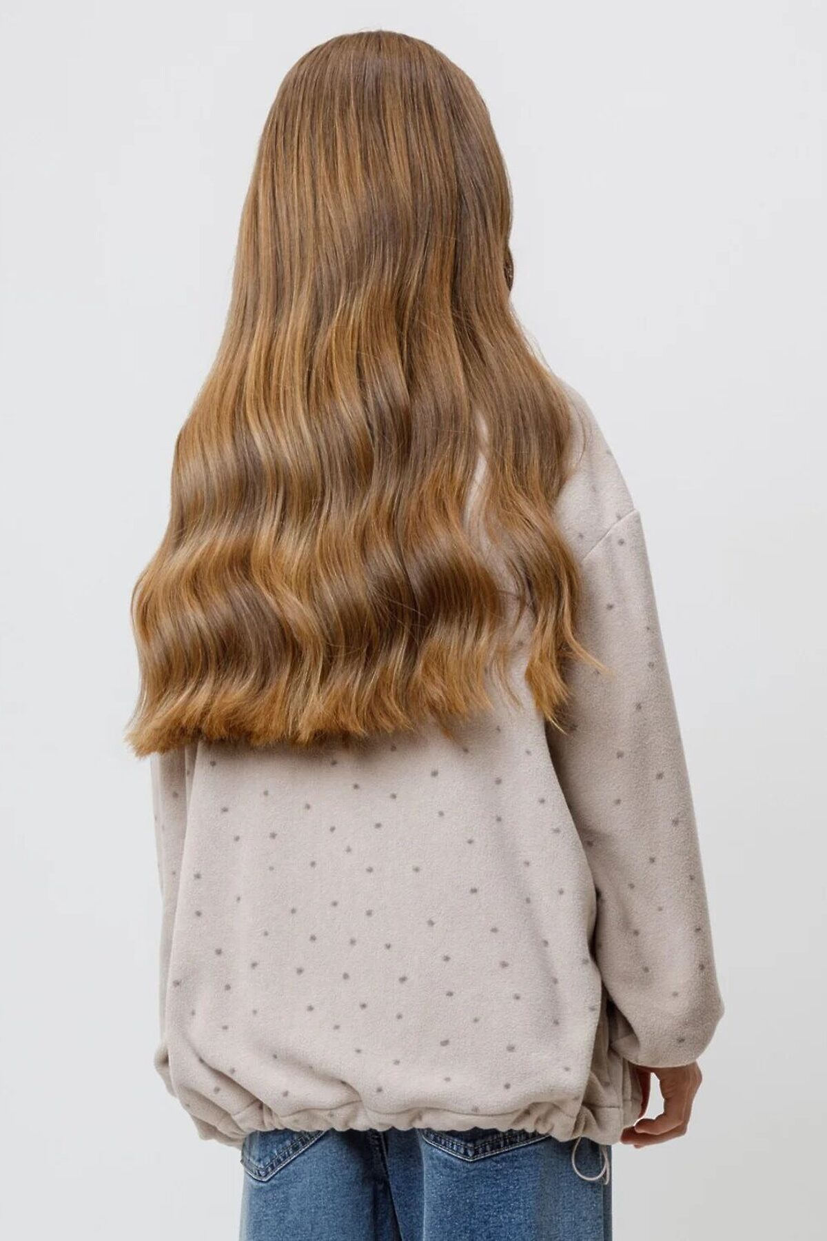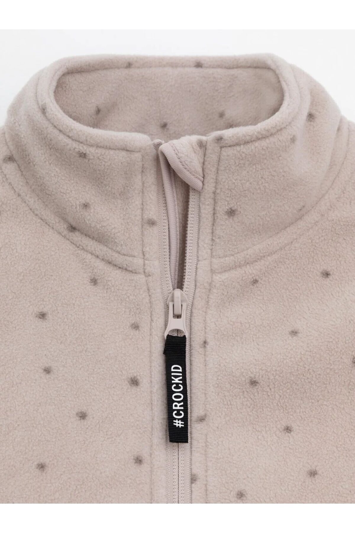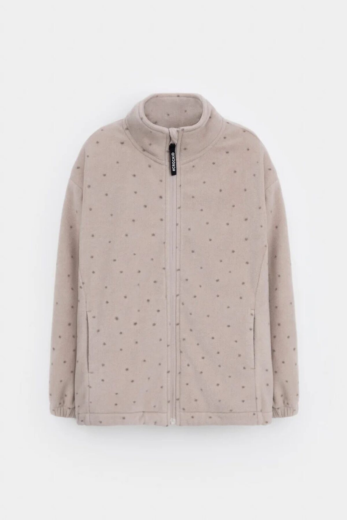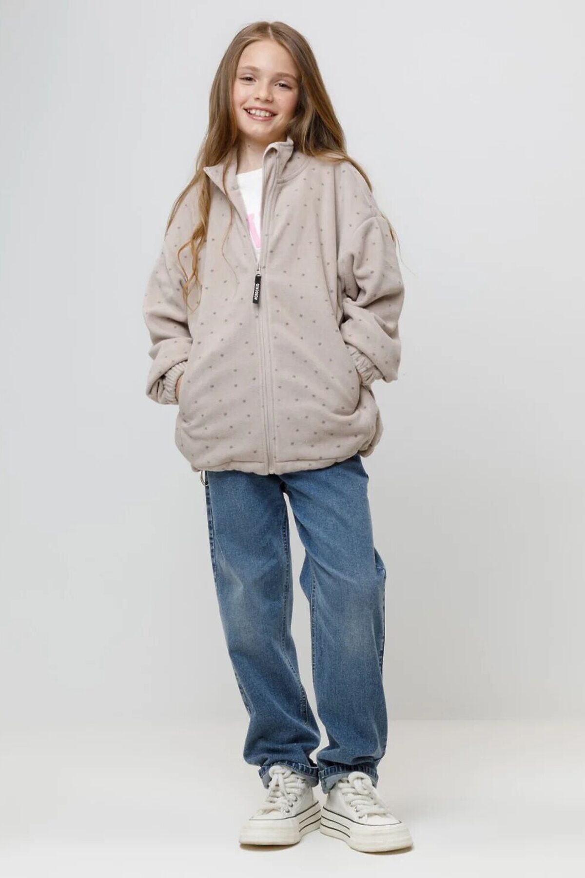 Флисовая куртка для девочки. У изделия высокий воротник и застёжка на молнию с мягкой защитой шеи и подбородка. По бокам два кармана. Рукава собраны на резинку. Низ изделия регулируется по ширине с помощью эластичной утяжки со стопперами. Куртка сохраняет цвет и форму после многократных стирок.