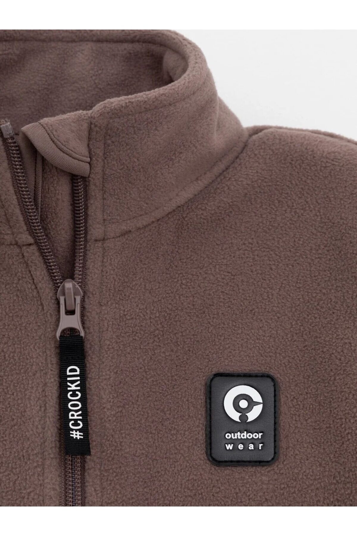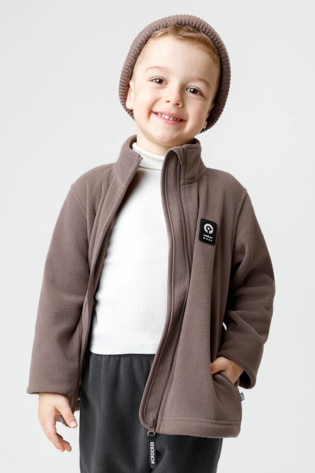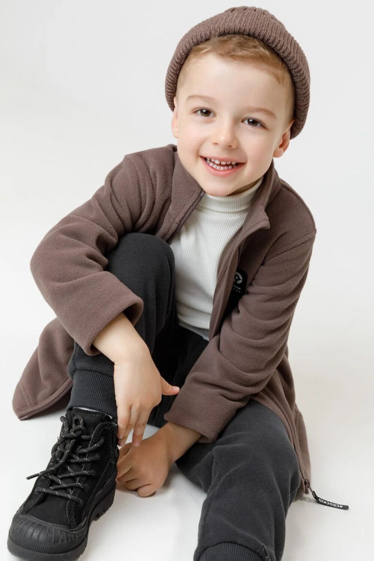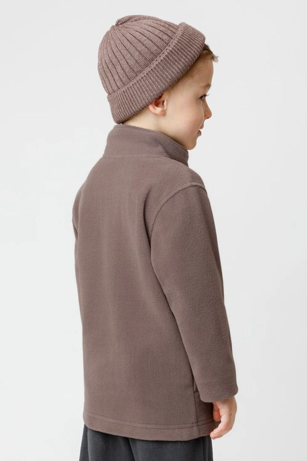 Флисовая куртка для мальчика. У изделия высокий воротник и застёжка на молнию с мягкой защитой шеи и подбородка. По бокам два кармана. Куртка сохраняет цвет и форму после многократных стирок.