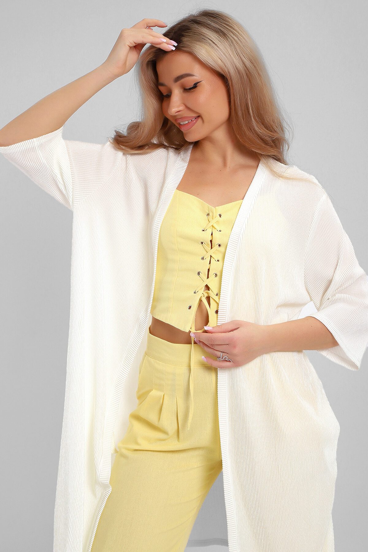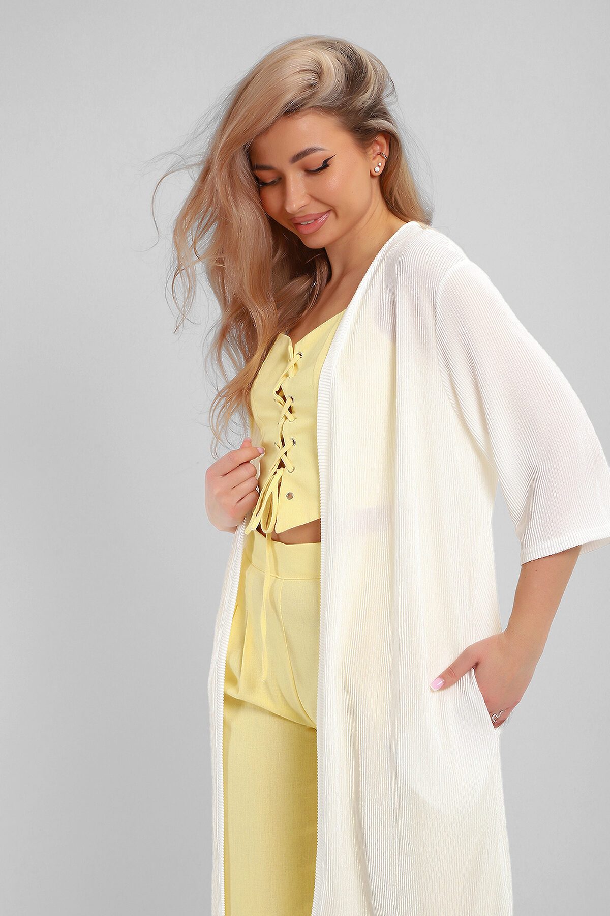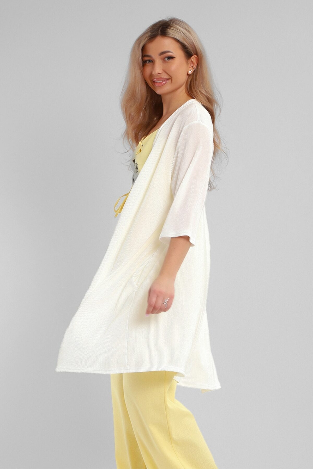 Создайте свой неповторимый образ с помощью элегантного кардигана длиной макси, который станет идеальным дополнением любого гардероба. Изготовленный из легкого струящегося материала атлас гофре, этот предмет одежды обеспечивает комфорт и легкость на протяжении всего дня. Стильная накидка без застежки позволяет легко комбинировать ее с различными нарядами, создавая при этом модный изысканный образ. Базовые расцветки кардигана без труда впишутся в ваш гардероб. Рукав длиной 3/4 подойдет дамам любого роста. Внутренний карман в боковом шве добавляет удобство и функциональность изделию. Длинный силуэт визуально вытягивает фигуру и добавляет женственности вашему образу.