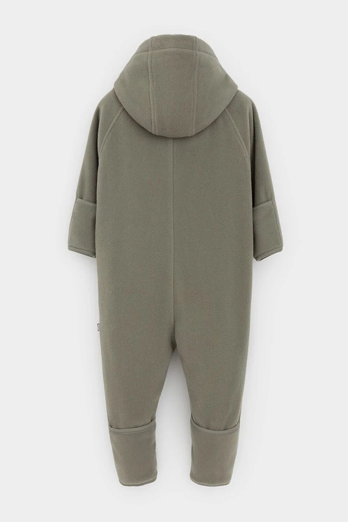 Флисовый комбинезон для мальчика со съёмным капюшоном. Капюшон регулируется по ширине с помощью эластичной утяжки со стопперами. Подклад выполнен из гладкого трикотажа супрем, произведённого из высококачественного натурального хлопка. Застёгивается на удлинённую молнию с мягкой защитой шеи и подбородка. В размерах 62, 68 и 74 на рукавах и ножках есть отвороты. Комбинезон сохраняет цвет и форму после многократных стирок.