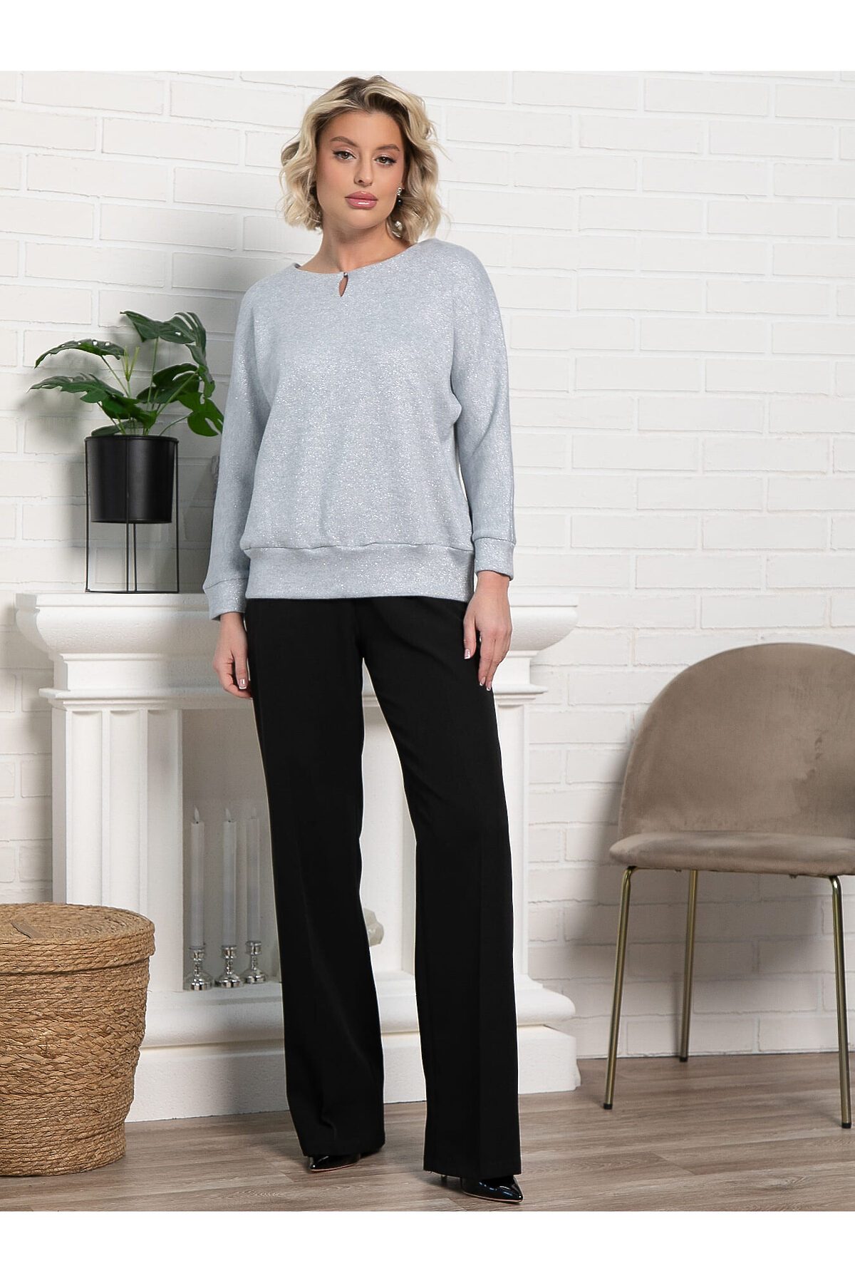 Погрузитесь в уют и стиль с нашим джемпером в нежно-голубом цвете, который станет универсальным дополнением вашего гардероба. Декоративная бусинка в вырезе на груди добавляет нотку изысканности и делает джемпер уникальным. Рукава и пояс на манжете. Этот джемпер идеально подходит как для повседневного, так и для праздничного стиля – его легко сочетать с юбками, брюками и джинсами, создавая разнообразные образы для любого случая.