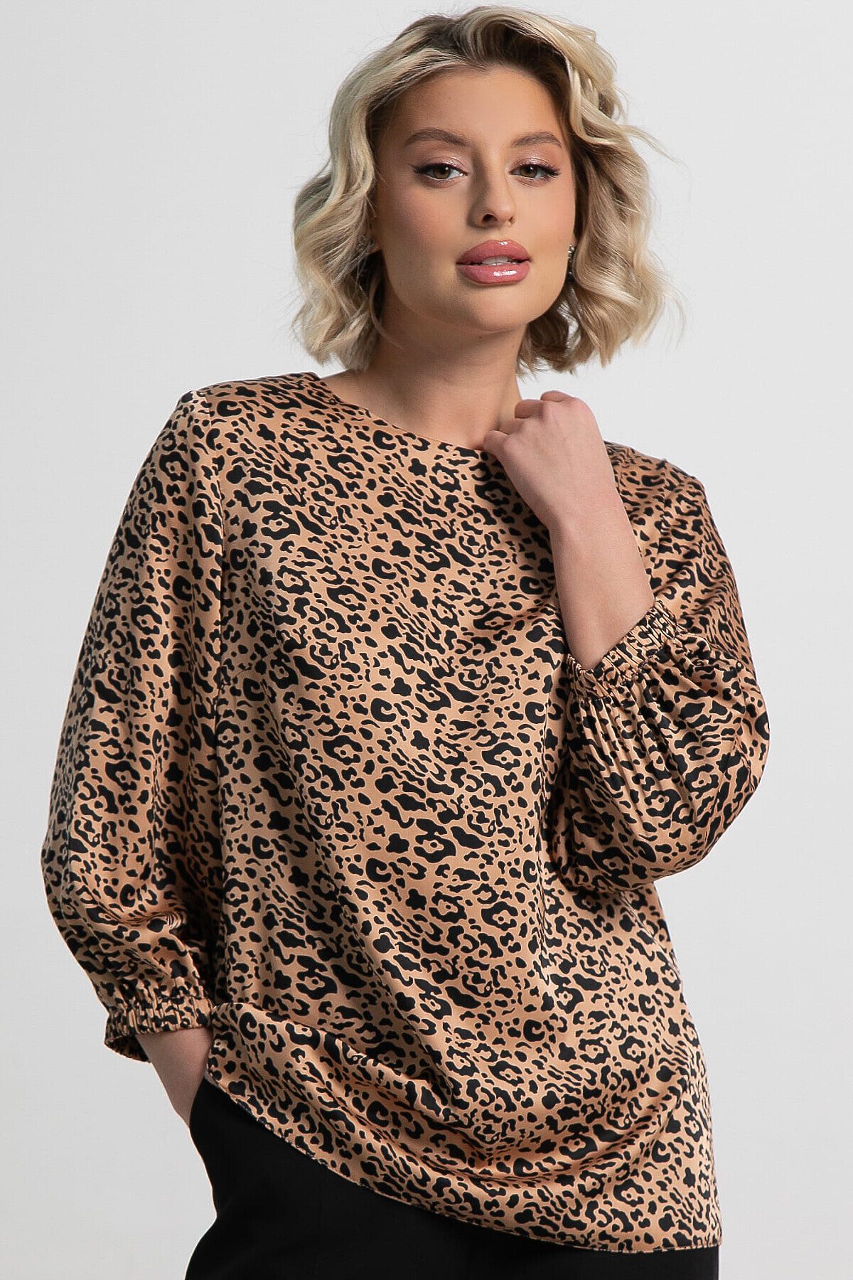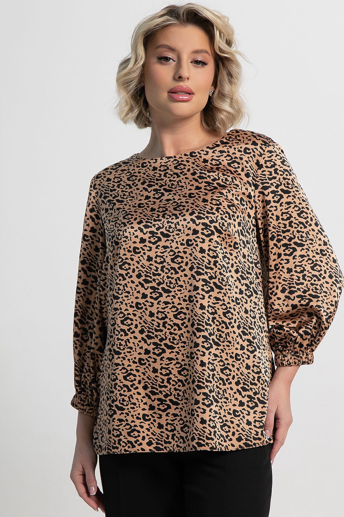Привнесите в свой гардероб нотку утонченности и стиля с этой потрясающей блузкой! Она станет отличным выбором для тех, кто дорожит удобством и элегантностью в любых обстоятельствах. Блузка с рукавами три четверти, заканчивающимися резинкой, придает образу легкость и современный вид. Яркий дизайн делает эту модель выразительной и запоминающейся. Блузка универсальна: она прекрасно подойдет как для деловых встреч, так и для торжественных событий, легко сочетаясь с различными юбками, брюками и аксессуарами. Украсьте свой гардероб этой эффектной атласной блузкой и подчеркните свою индивидуальность!