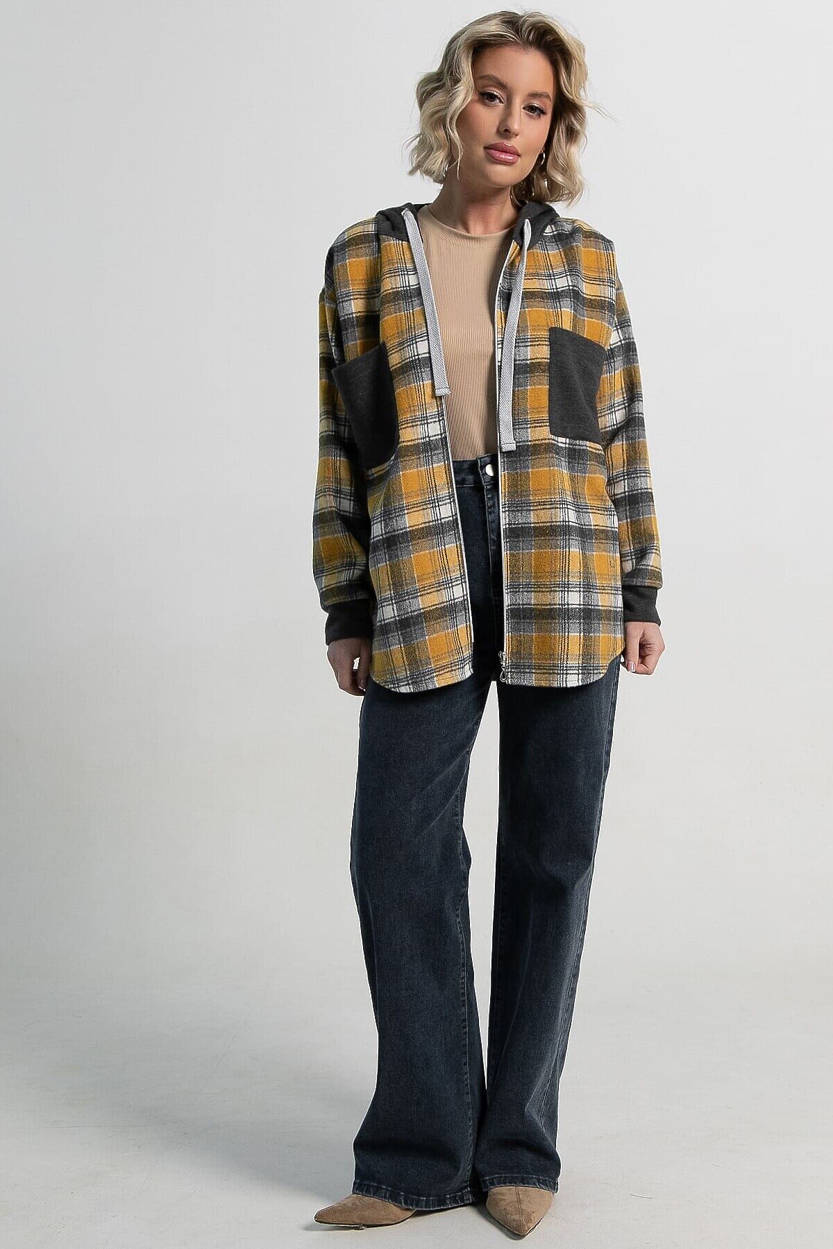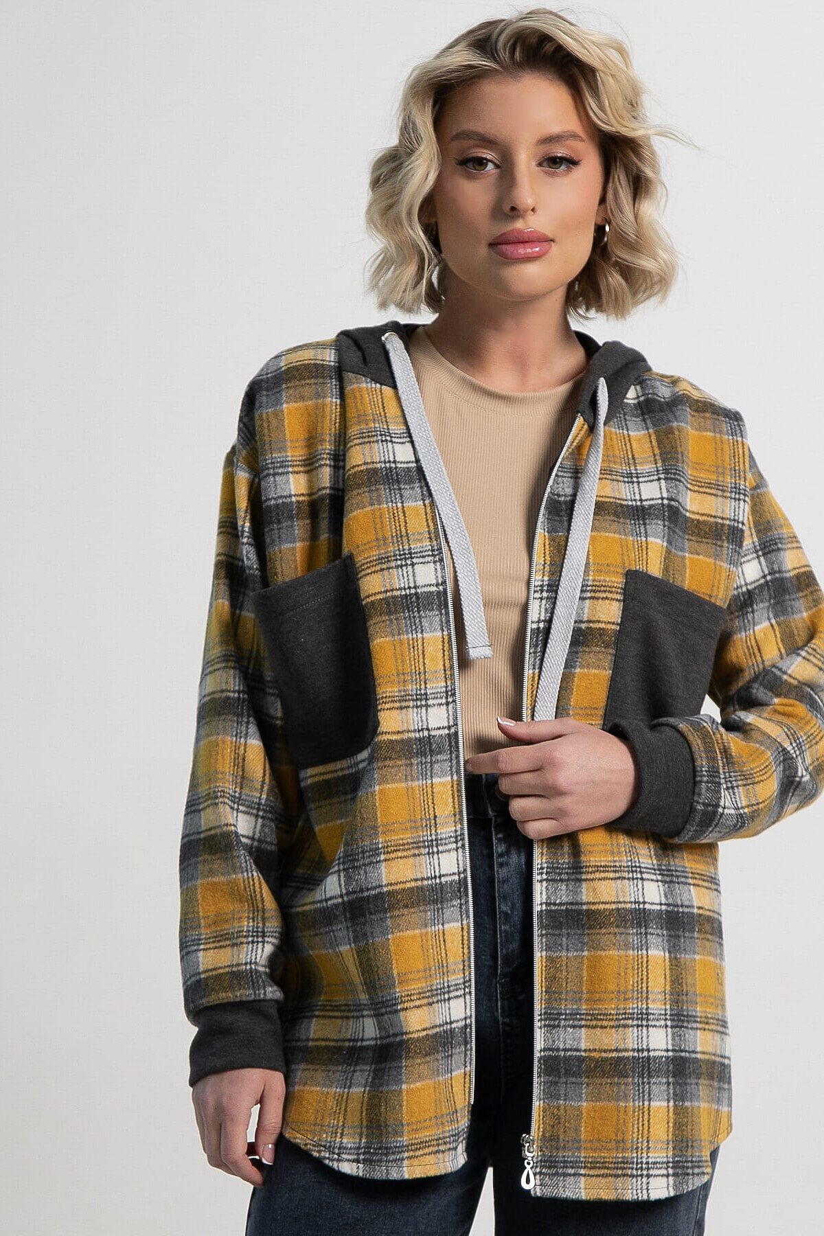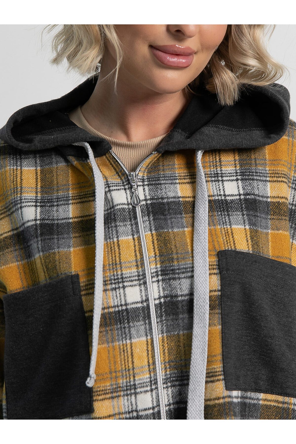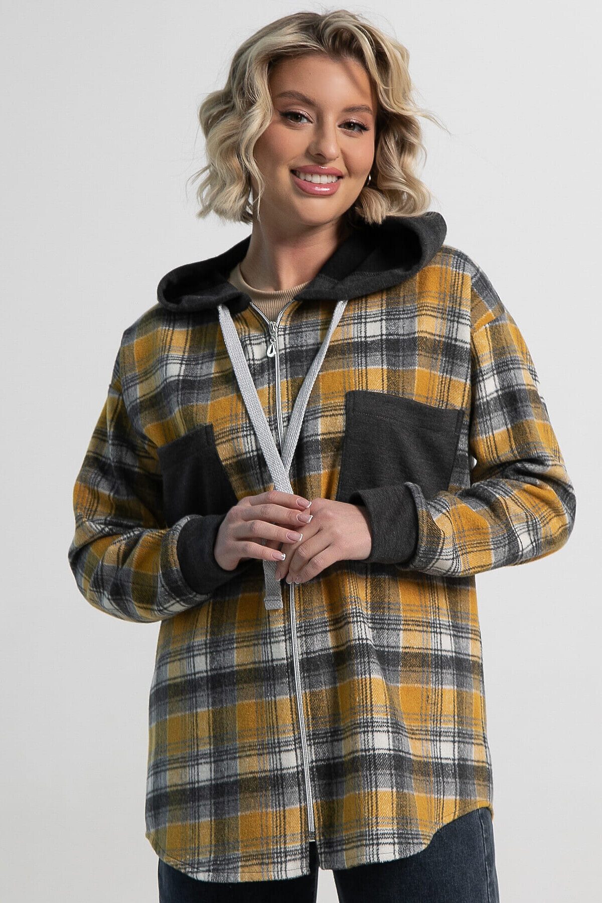 Рубашка из плотной ткани в модную клетку на молнии, с длинным рукавом, накладными карманами и капюшоном прекрасно подходит для повседневного многослойного образа. Сочетая в себе комфорт и уют, она создает новый тренд в одежде и свежий альтернативный вариант для гардероба. Идеально подходит к джинсам, брюкам и шортам.