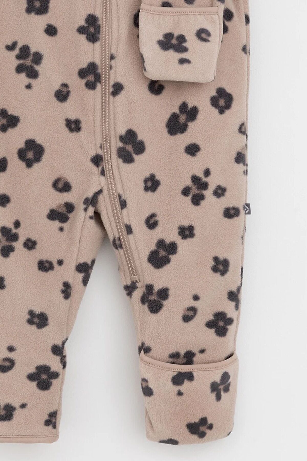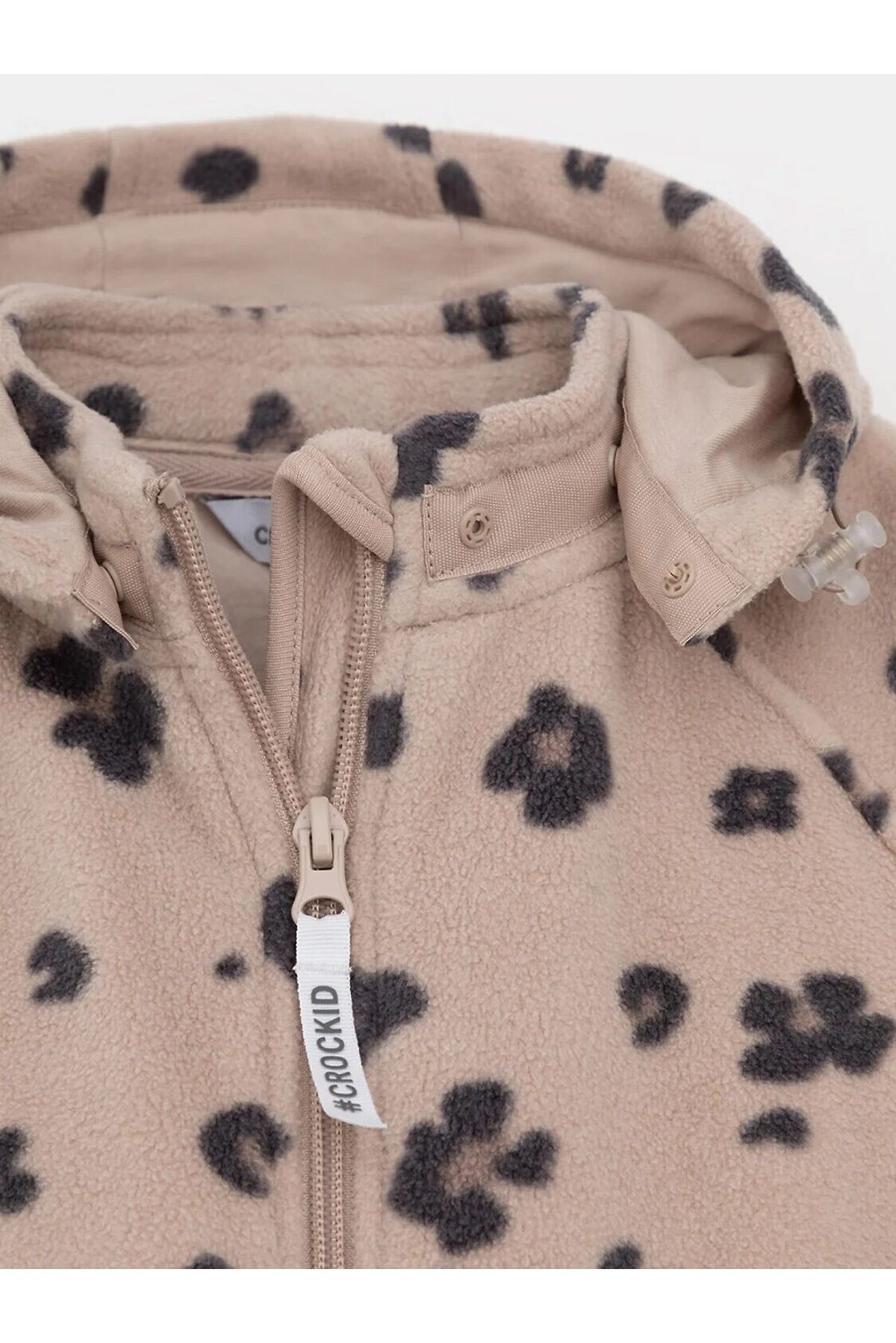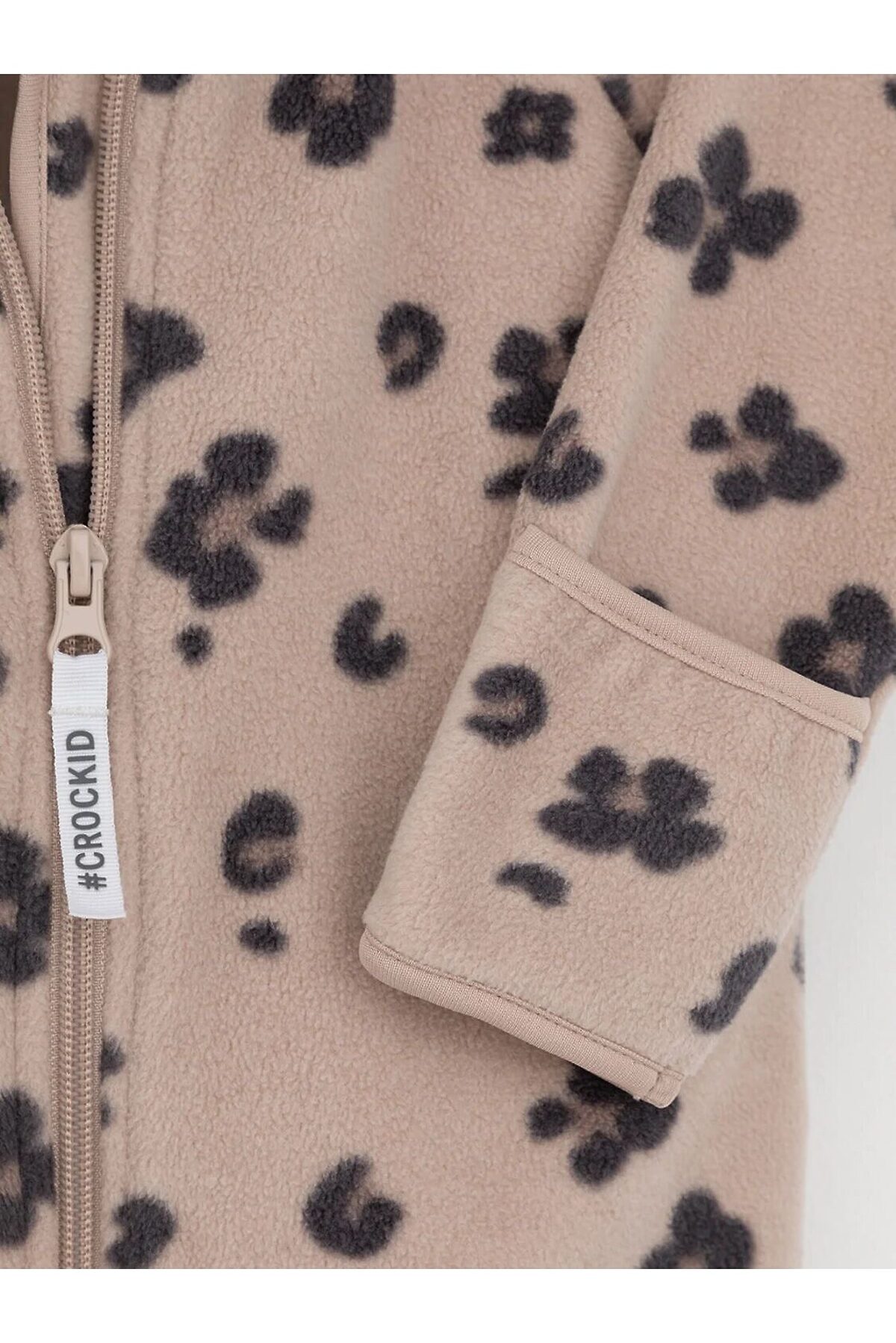 Флисовый комбинезон для девочки со съёмным капюшоном. Капюшон регулируется по ширине с помощью эластичной утяжки со стопперами. Подклад выполнен из гладкого трикотажа супрем, произведённого из высококачественного натурального хлопка. Застёгивается на удлинённую молнию с мягкой защитой шеи и подбородка. В размерах 62, 68 и 74 на рукавах и ножках есть отвороты. Комбинезон сохраняет цвет и форму после многократных стирок.