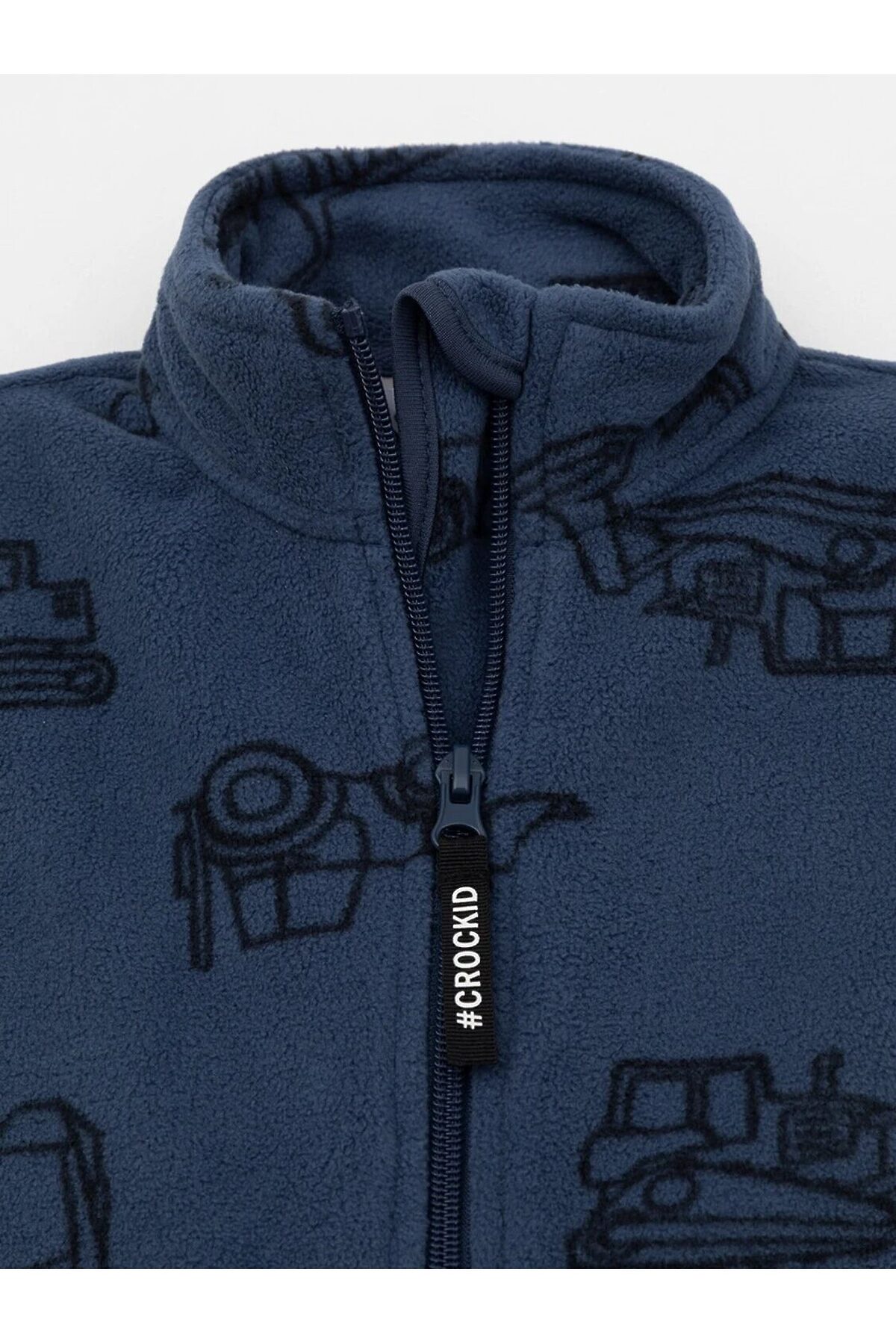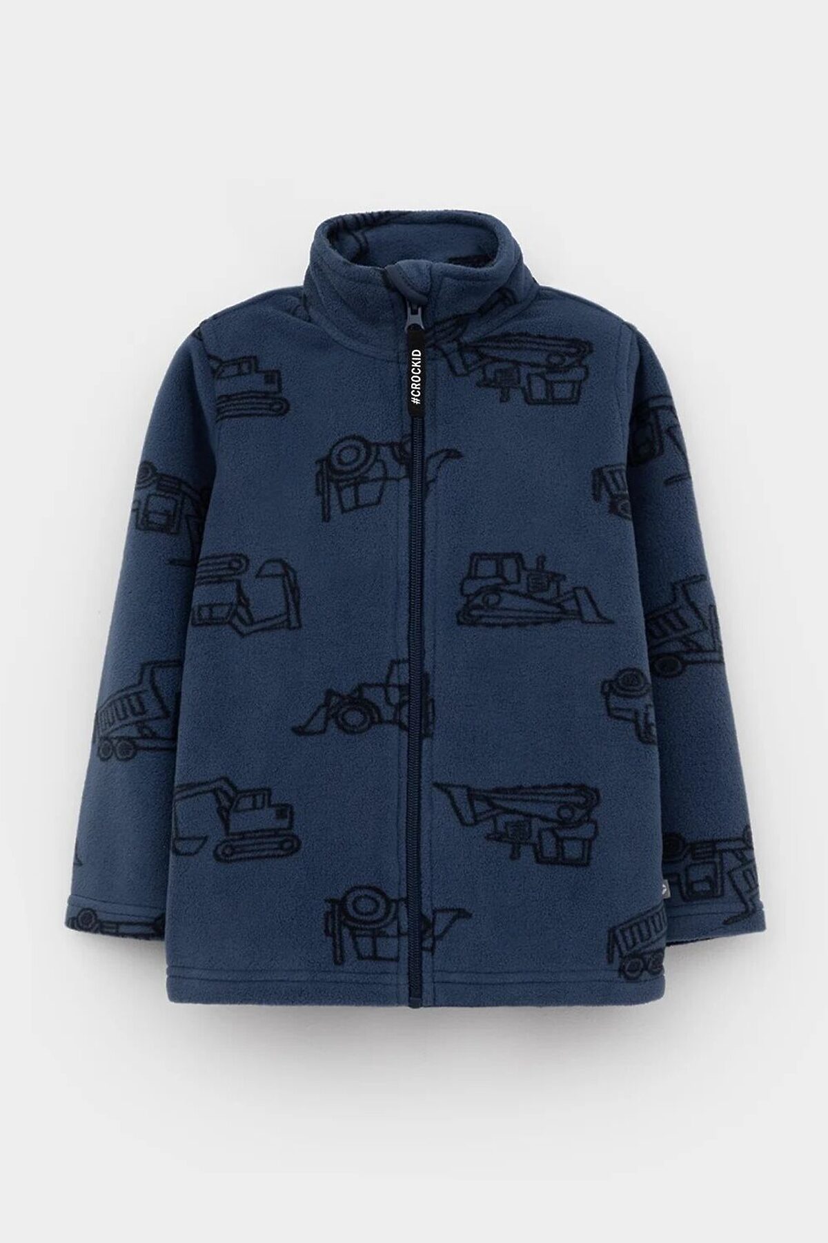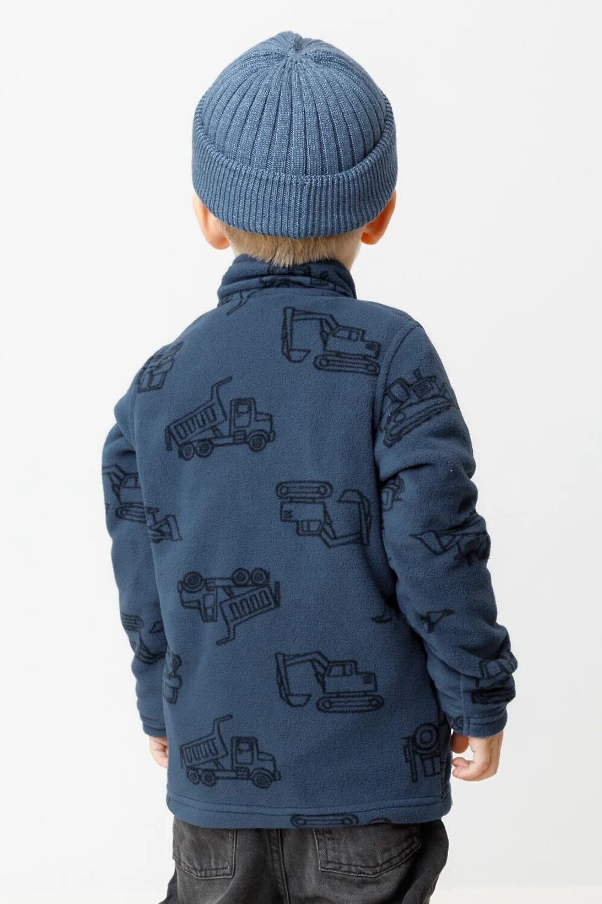 Флисовая куртка для мальчика. У изделия высокий воротник и застёжка на молнию с мягкой защитой шеи и подбородка. По бокам два кармана. Куртка сохраняет цвет и форму после многократных стирок.