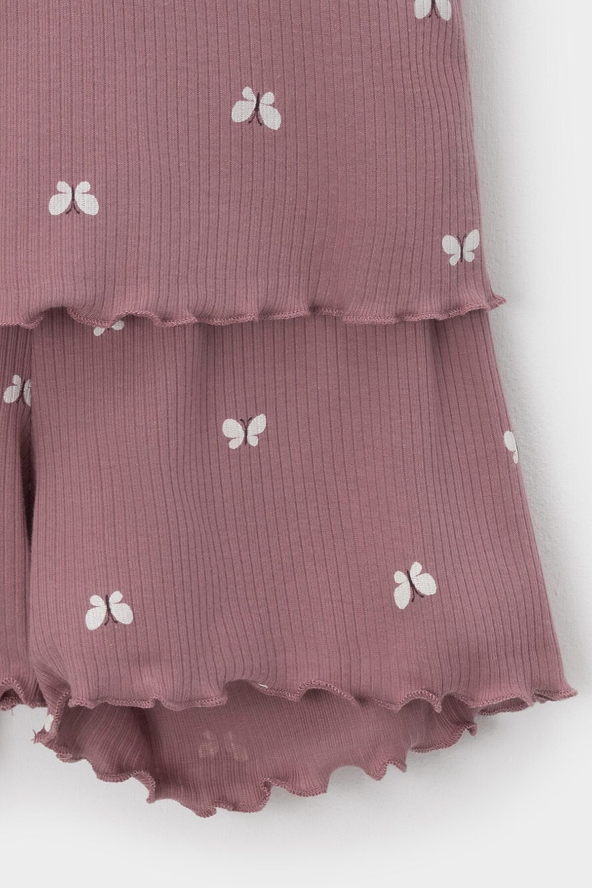 Трикотажная пижама в рубчик из натурального хлопка. Футболка с короткими втачными рукавами и шорты с эластичной резинкой в поясе. Оригинальная набивка выполнена из стойких текстильных гипоаллергенных красителей. Изделие сохраняет цвет и форму после многократных стирок. Все трикотажные полотна производятся в соответствии с нормами швейцарского сертификата ЭкоТекс.