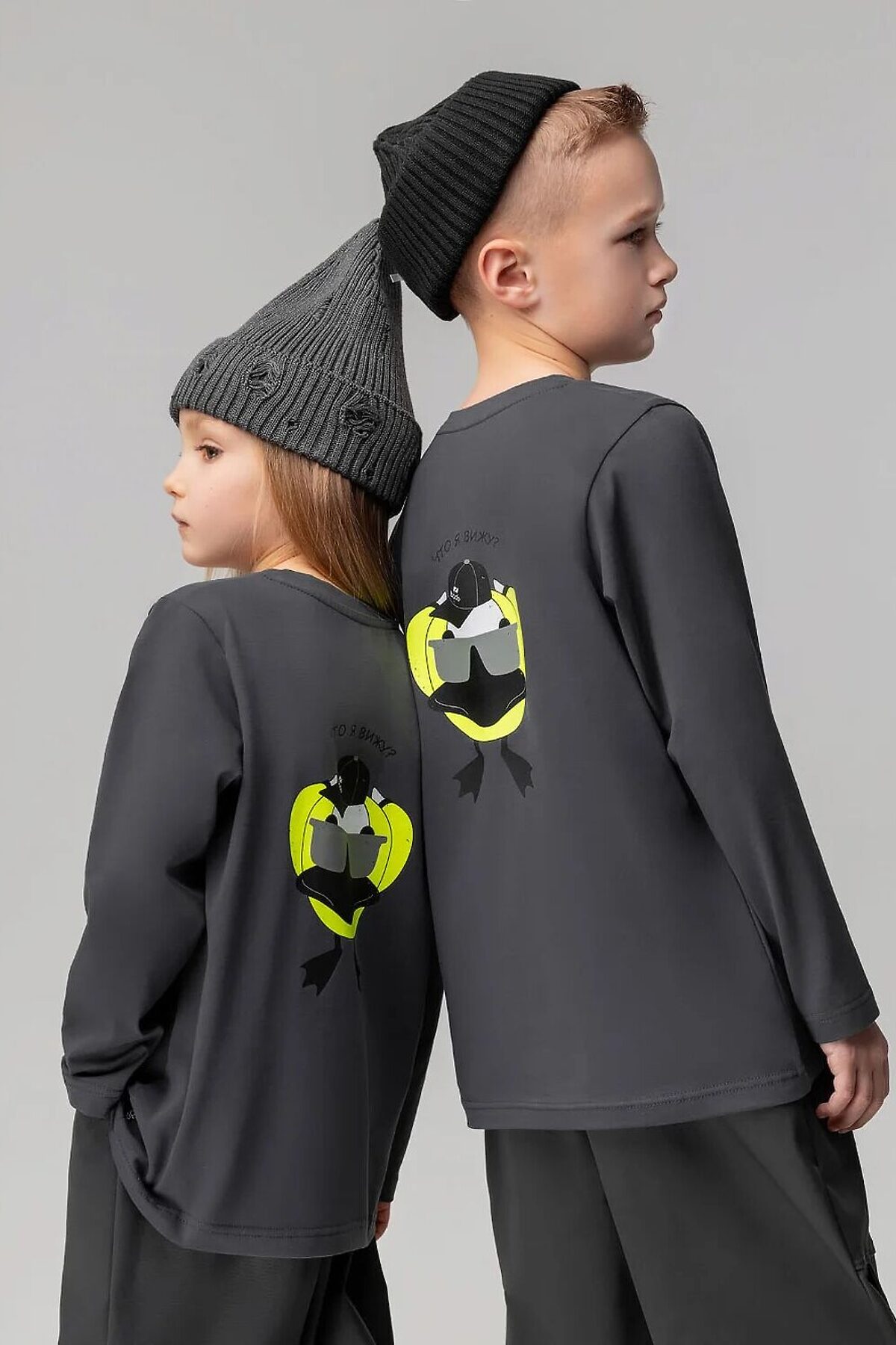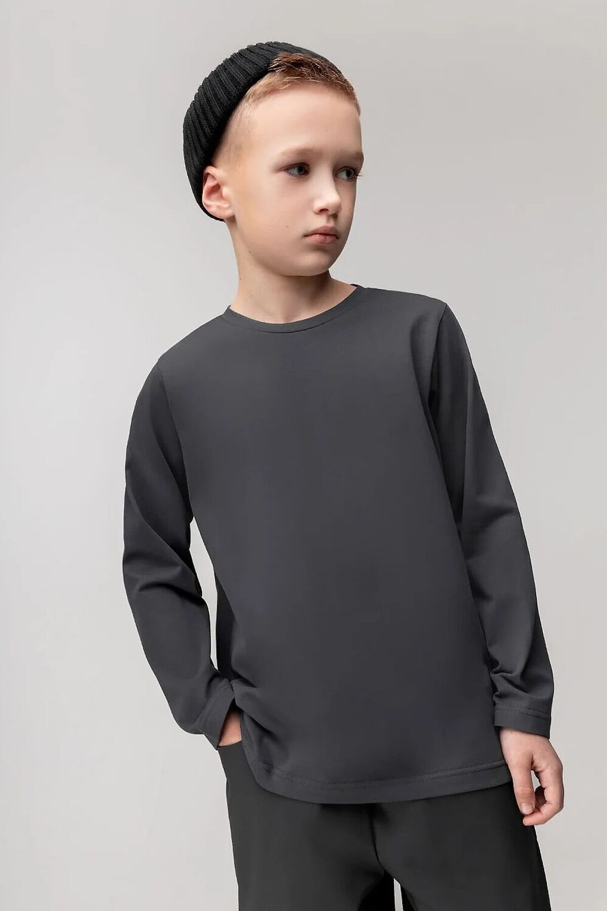 Лонгслив для детей дошкольного возраста. Лонгслив свободного силуэта с втачным длинным рукавом. Горловина футболки округлой формы. Низ изделия прямой.