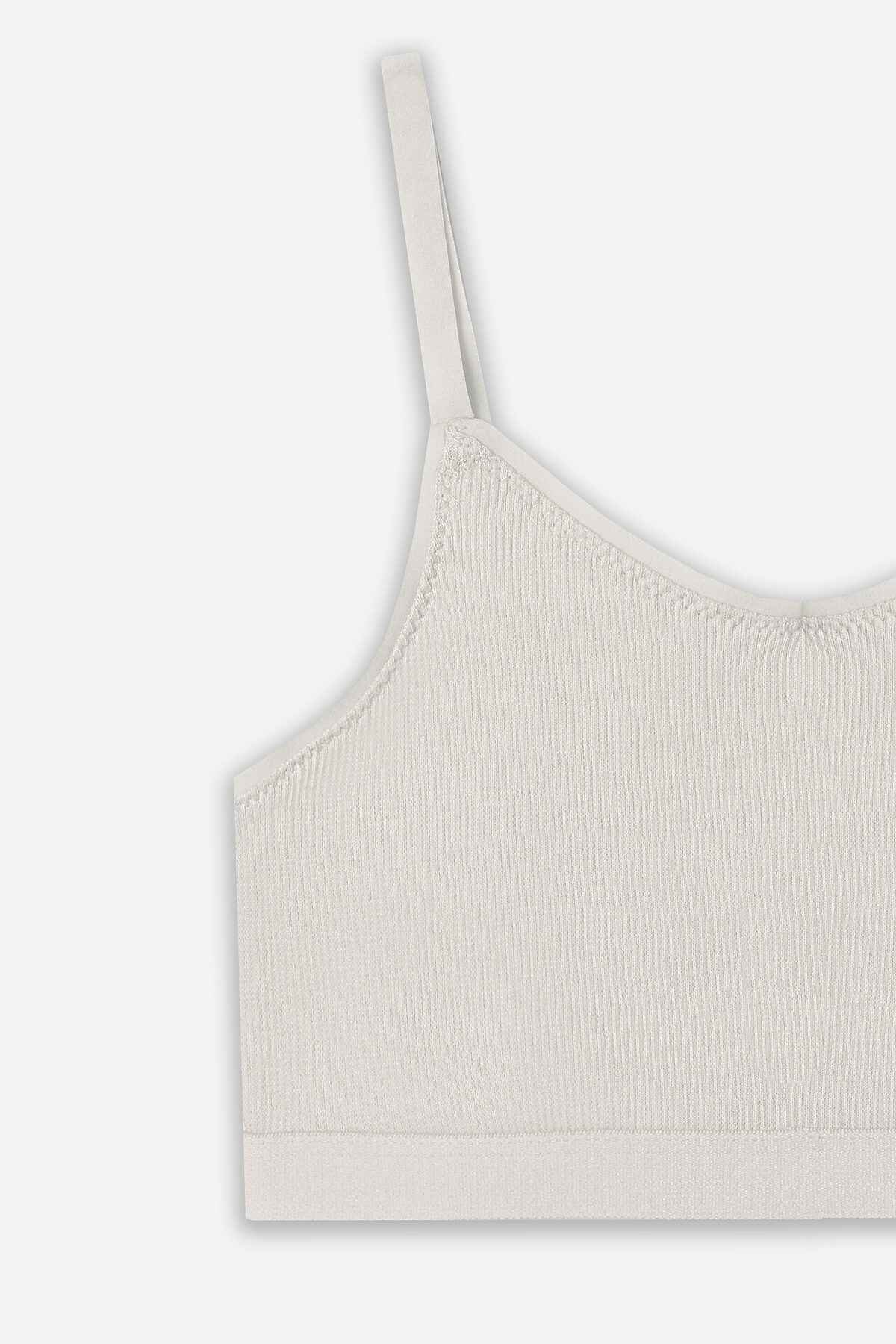 Хлопковое бюстье прилегающего силуэта для девочек. Выполнено из легкой и приятной к телу трикотажной рибаны. Вырез горловины и проймы окантованы эластичной тесьмой. На бретелях есть кольца-регуляторы. По нижнему краю бюстье расположена удобная и стильная жаккардовая тесьма. Идеально!