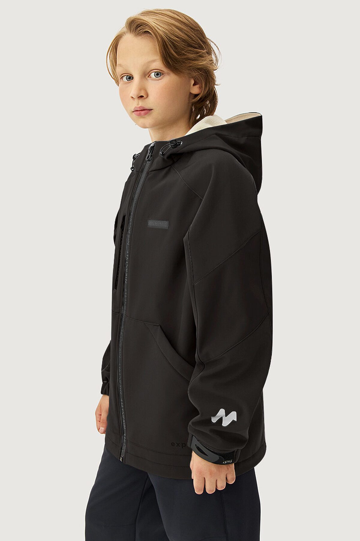 Ветровка для мальчика СКАЙЛАЙН из Softshell идеально подходит активным детям на прогулках, которые много двигаются и не сидят на месте. Softshell - это инновационный материал нового поколения, внешний слой которого защищает от влаги и ветра, внутренний слой из флиса сохраняет тепло и отводит лишнюю влагу, а промежуточный мембранный слой имеет хорошую паропроницаемость и позволяет коже дышать. Softshell приятный на ощупь, легкий и эластичный материал, не сковывающий движения ребенка.Функционал: - центральная застежка с влагоотталкивающей молнией, - ветрозащитная планка, - карман на молнии, - нижние карманы, - капюшон с кулисой для регулировки объема. Мы все продумали до мелочей, поэтому модель оснащена:- кулисой по низу для регулировки объема изделия, - манжетами на резинке с дополнительной регулировкой на липучках для защиты от проникновения холодного ветра, - светоотражающими элементами для безопасности ребенка в темное время суток.Когда носить? Весной и осенью с теплой поддевой, а также прохладным летом.Температурный режим от +5°С до +15°С.Уход за изделиями из Softshell аналогичен уходу за изделиями из мембранной ткани и достаточно прост — большинство загрязнений легко удаляются влажной салфеткой или щеткой с водой. Возможна машинная стирка при 30°С с использованием жидких средств для мембранной ткани. Отжим на минимальных оборотах, сушить на вешалке в расправленном виде.