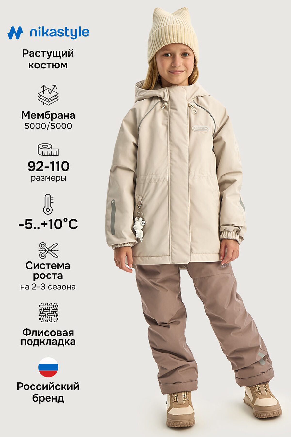 Костюм СКАНДИ с системой роста на один размер (длина рукавов и брючин увеличивается на 4-5см). Костюм из мембранной ткани 5000/5000 с водо- грязеотталкивающей технологией TEFLON. Мембранная ткань - это непродуваемый и водонепроницаемый материал, который надежно защищает от ветра и влаги. Благодаря дышащим свойствам мембраны ребенку будет комфортно в любую погоду и он не вспотеет. Ткань обработана снаружи экологически чистым протектором TEFLON для защиты от воды и грязи.Мембрана в сочетании с утеплителем нового поколения FIBERlite сохраняет тепло во время прогулок, позволяя телу дышать. Флисовая подкладка отводит влагу и имеет хорошие теплоизоляционные свойства. Куртка со съемным брелком-игрушкой.Функционал: - центральная застежка на молнии, - ветрозащитная планка, - карманы с застежкой на кнопку, - кулиса для регулировки объема по капюшону и по талии, - манжеты на резинке, - внутренняя сторона манжета из флиса, - внутренние бретели для возможности снять куртку в помещении. Мы все продумали до мелочей, поэтому полукомбинезон дополнительно оснащен:- регулируемыми бретелями, - удобными карманами, - снегозащитными муфтами, - силиконовыми штрипками, - светоотражающие элементы для безопасности ребенка в темное время суток.Область колен и шов сидения проклеены.В костюме предусмотрена СИСТЕМА РОСТА. Удлинить рукава и штанины можно, удалив строчку на подкладке и костюм подрастет вместе с ребенком.Комфортная температура эксплуатации от -5°С до +10°С. Рекомендуем приобрести комплектом аксессуары, обувь и другие вещи из капсулы в карточке товара, которые отлично сочетаются с изделиями коллекции