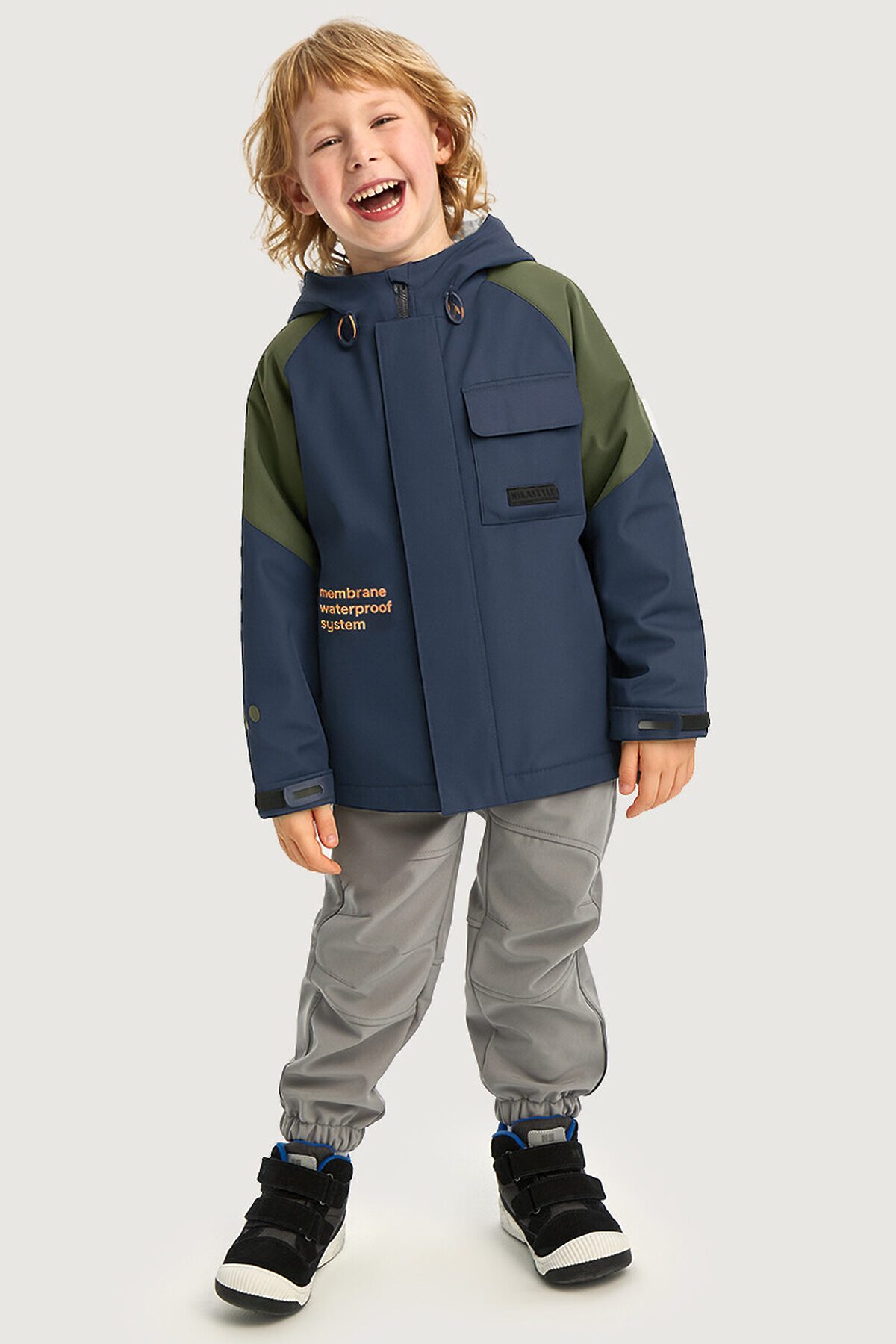 Ветровка ПАРКУР из мембранной ткани 5000/5000.Мембранная ткань - это непродуваемый и водонепроницаемый материал, который надежно защищает от ветра и влаги. Благодаря дышащим свойствам мембраны ребенку будет комфортно в любую погоду, и он не вспотеет. Флисовая подкладка отводит влагу и имеет хорошие теплоизоляционные свойства.Функционал: - центральная застежка на молнии, - ветрозащитная планка, - накладной карман с клапаном на липучках, - прорезные карманы, - капюшон с кулисой для регулировки объема. В рукавах гладкая подкладка для удобства продевания рук. Мы все продумали до мелочей, поэтому модель дополнительно оснащена:- манжетами на резинке с дополнительной регулировкой по длине - внутренняя сторона манжеты из флиса,- кулисой по низу для регулировки объема.Комфортная температура эксплуатации от +5°С до +15°С. Рекомендуем приобрести комплектом аксессуары, обувь и другие вещи из капсулы в карточке товара, которые отлично сочетаются с изделиями коллекции.