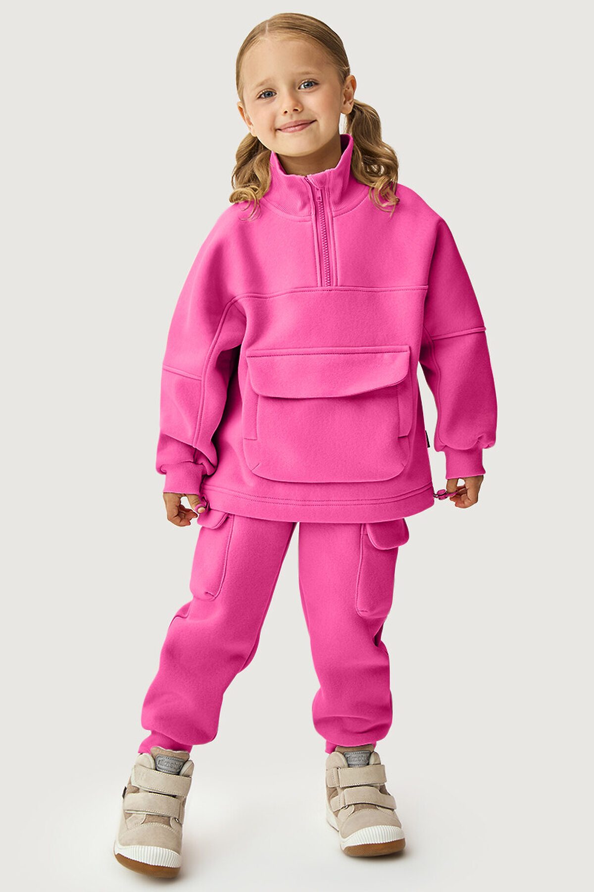 Костюм ХИП-ХОП из плотного хлопкового трикотажа с мягким стриженным начесом внутри. Состоит из двух предметов — анорака и брюк. Анорак свободного силуэта, воротник-стойка на молнии, большой накладной карман с боковыми входами. Манжеты, пояс и воротник из трикотажного полотна «кашкорсе». Брюки свободного силуэта, зауженные к низу, с боковыми карманами и накладными карманами, с трикотажными манжетами. Пояс с резинкой и со шнуром, для дополнительной регулировки объема по талии. Пояс и манжеты из трикотажного полотна «кашкорсе».Комплект можно носить в качестве самостоятельной одежды при t° от +10°С до +20°С, а также в качестве второго слоя под верхнюю одежду.Прекрасный вариант для прогулок и активного отдыха, в поездках просто незаменим. Комплект станет любимой вещью в гардеробе вашего ребенка. Рекомендуется предварительная стирка для удаления лишнего ворса с изделия.